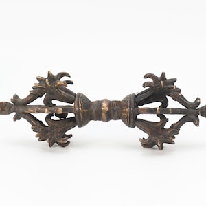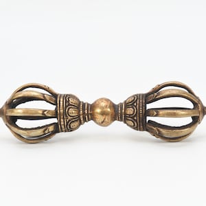 Vajra is a Sanskrit word meaning both thunderbolt and diamond. It is a weapon that is used as a ritual object to symbolize both the properties of a diamond (indestructibility) and a thunderbolt (irresistible force). The five-pronged vajra is the most commonly seen vajra.