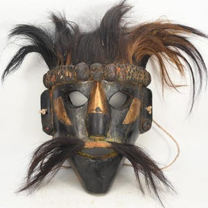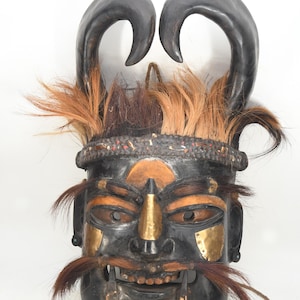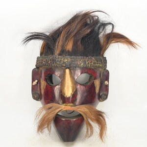 Handmade Antique Wood Tibetan Shaman Mask: Tribal Tantric Art