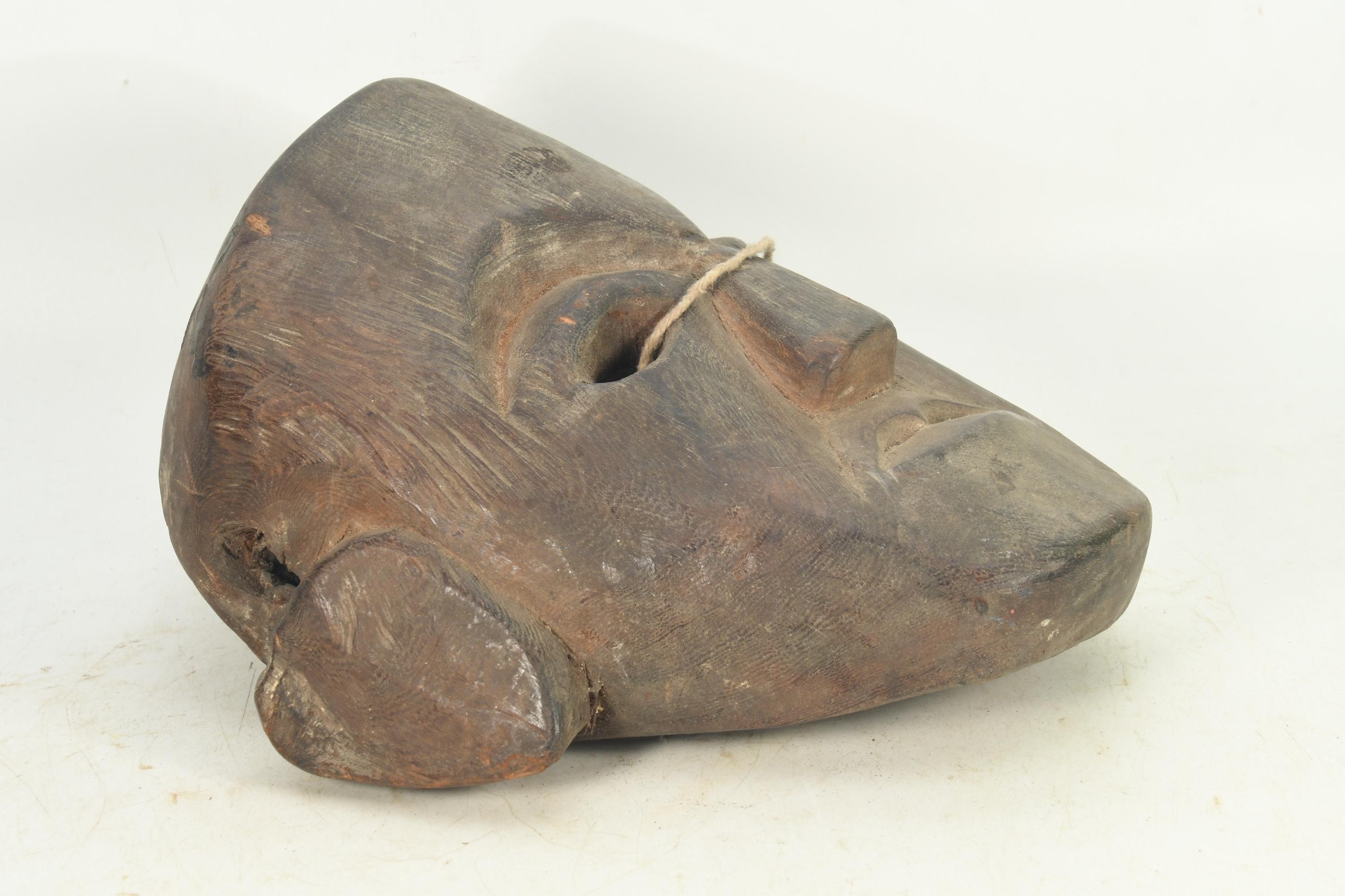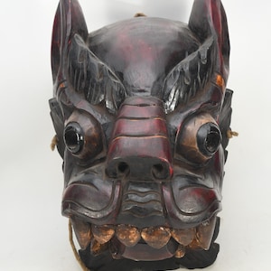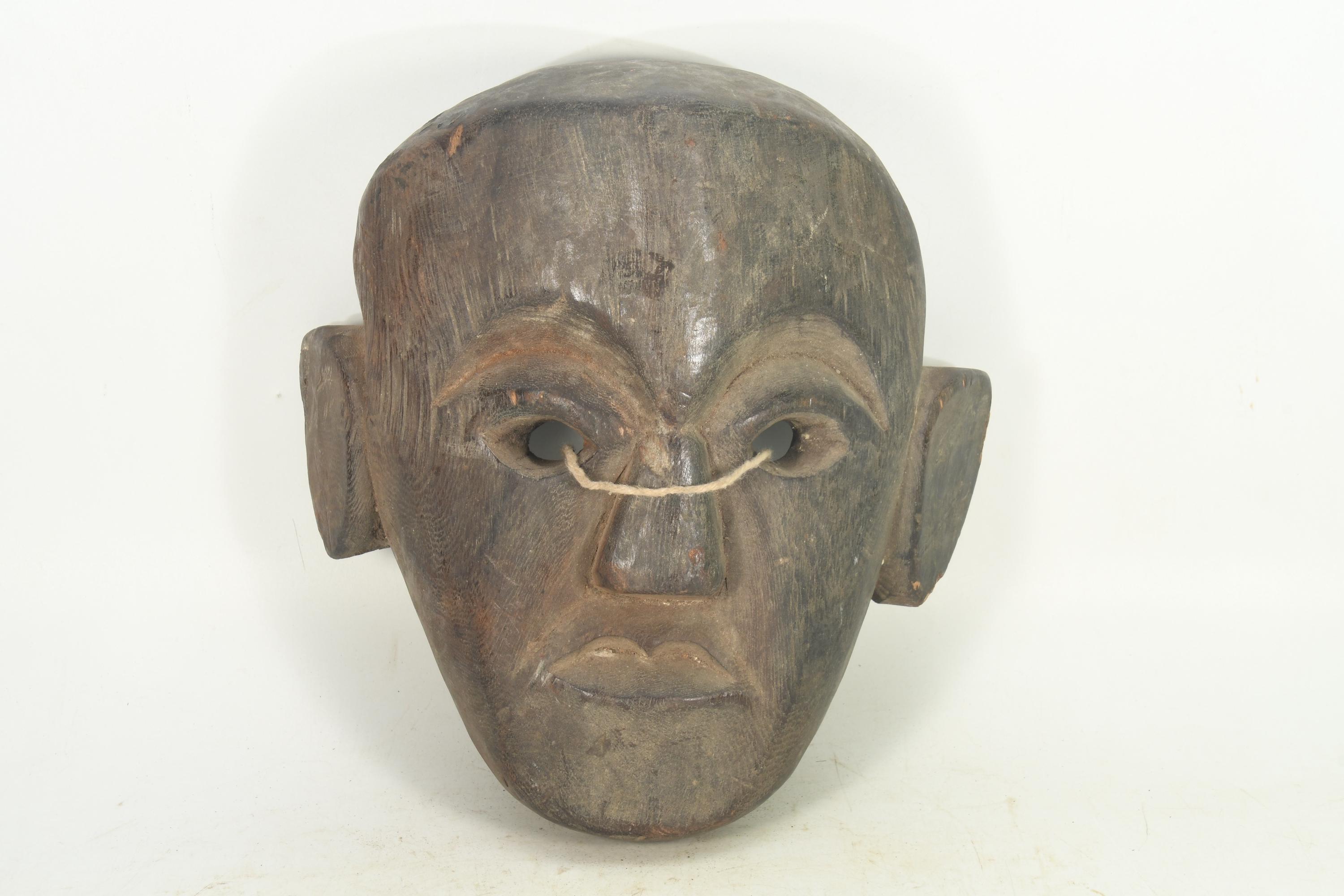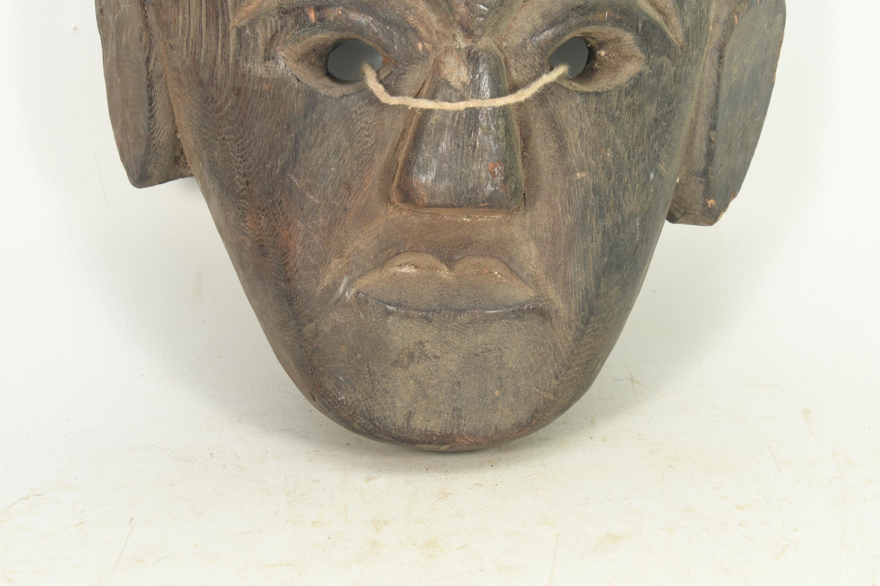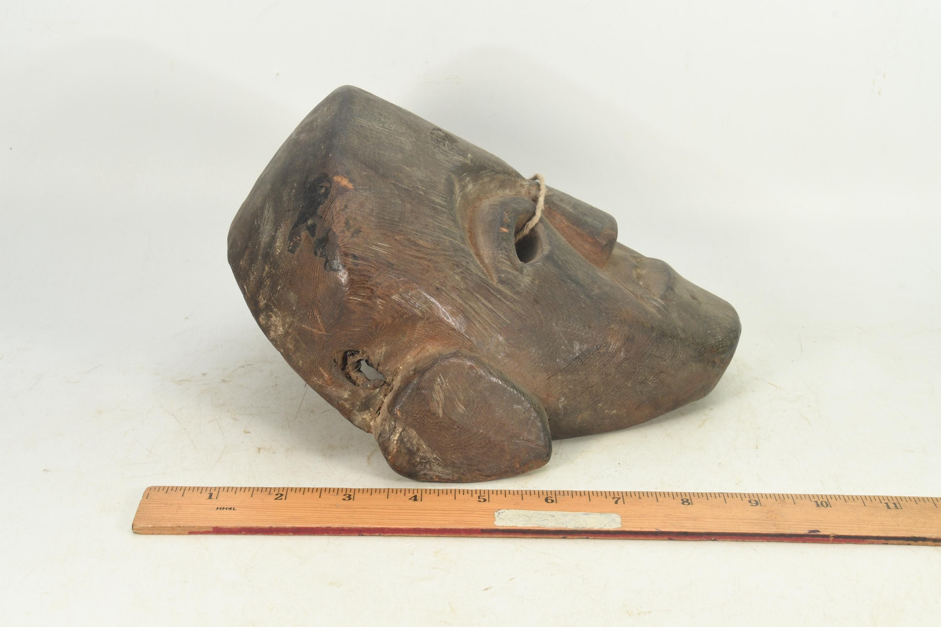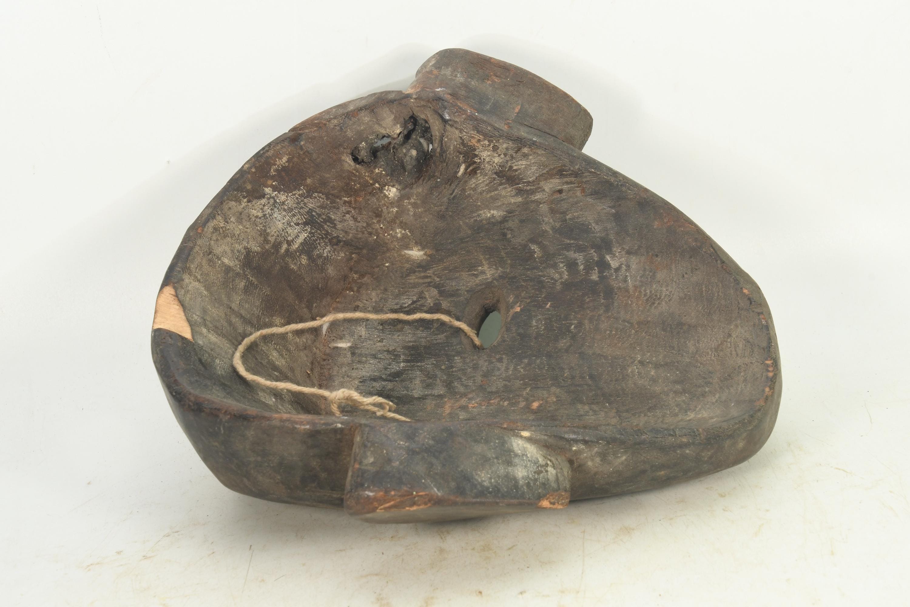 Antique Wood Carved Tibetan Shaman Mask, Ethnic Tribal Decor
