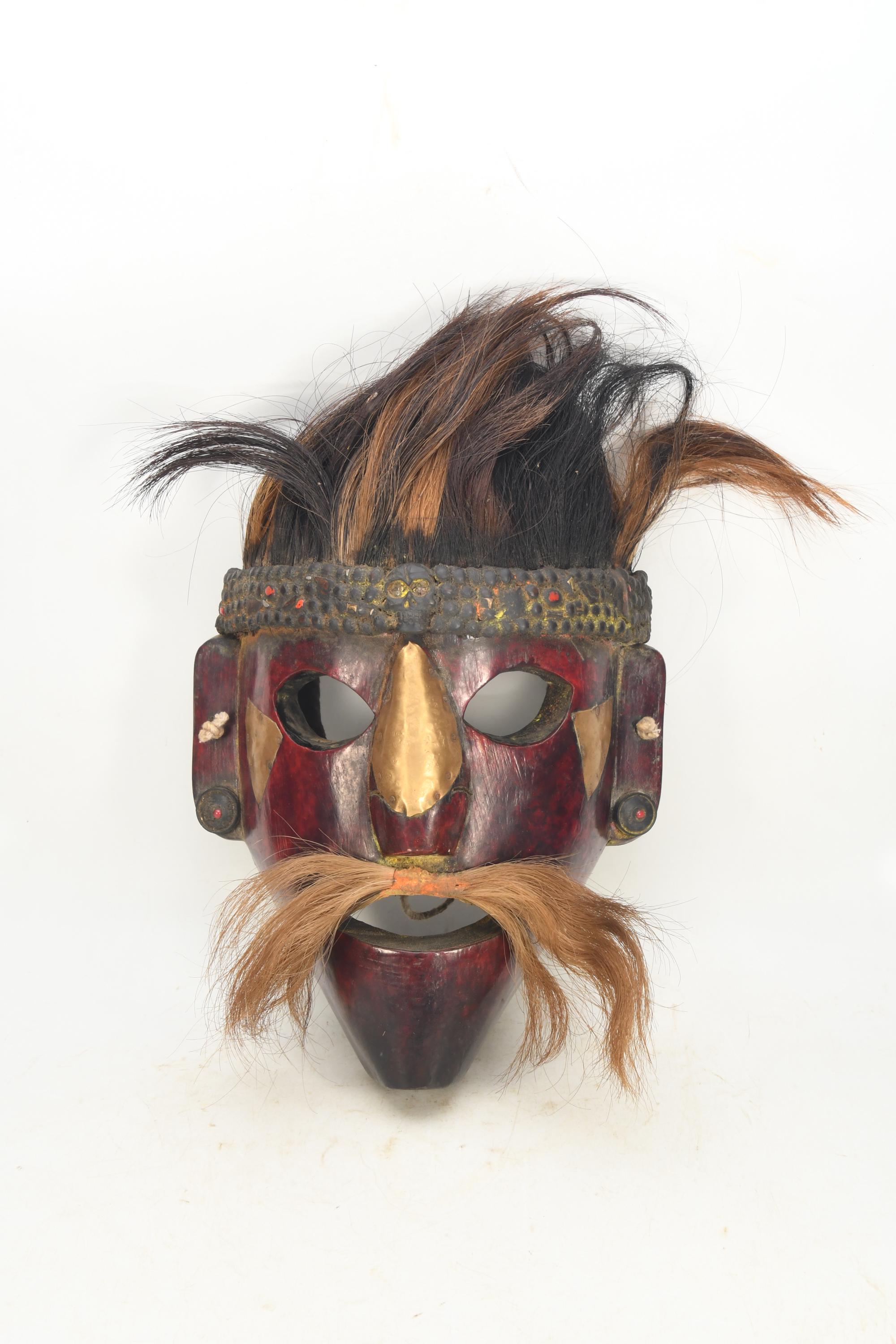 Vintage Handmade Tibetan Lama Mask, Tribal Shaman Wall Art