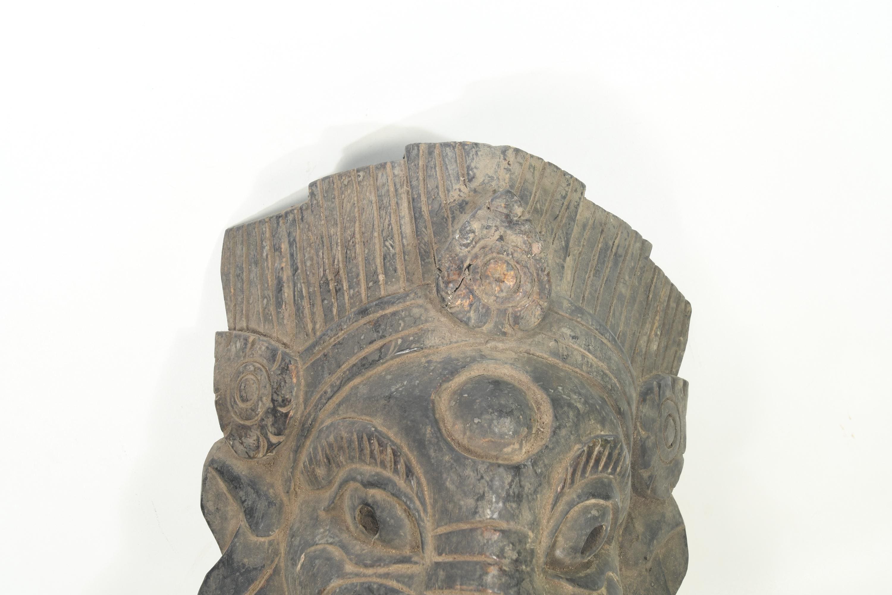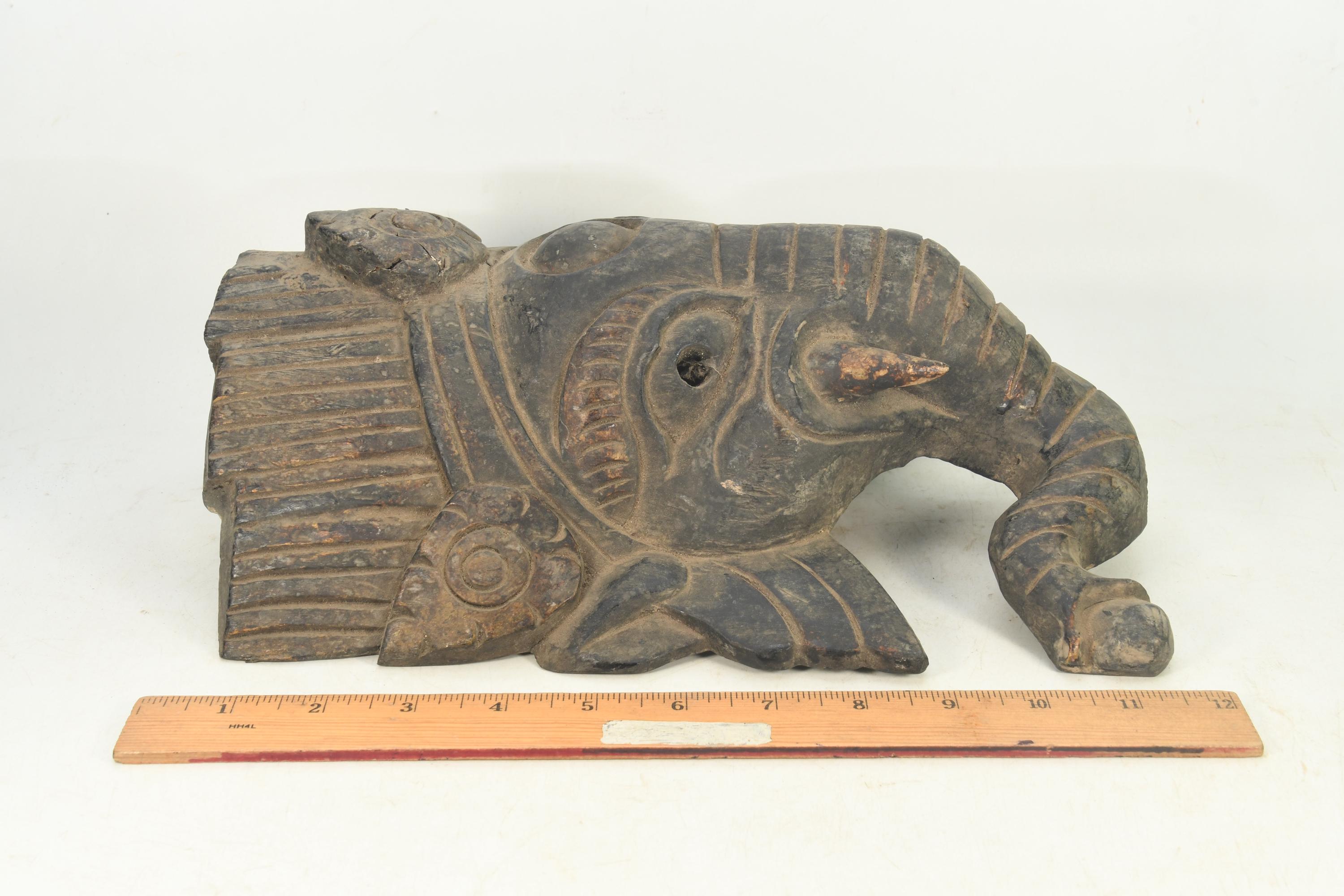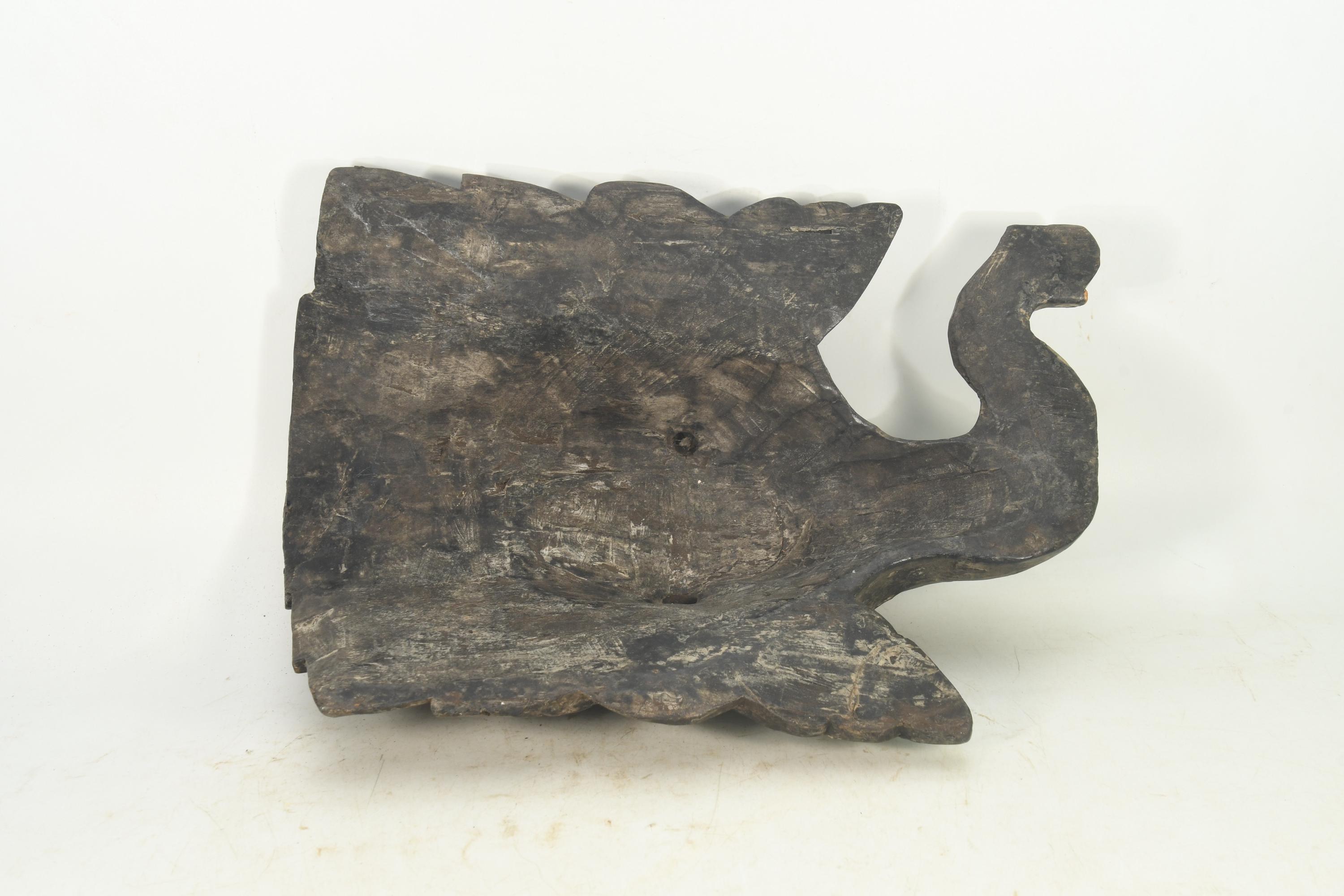 Hand Carved Wooden Ganesha Mask: Antique Tibetan Wall Decor