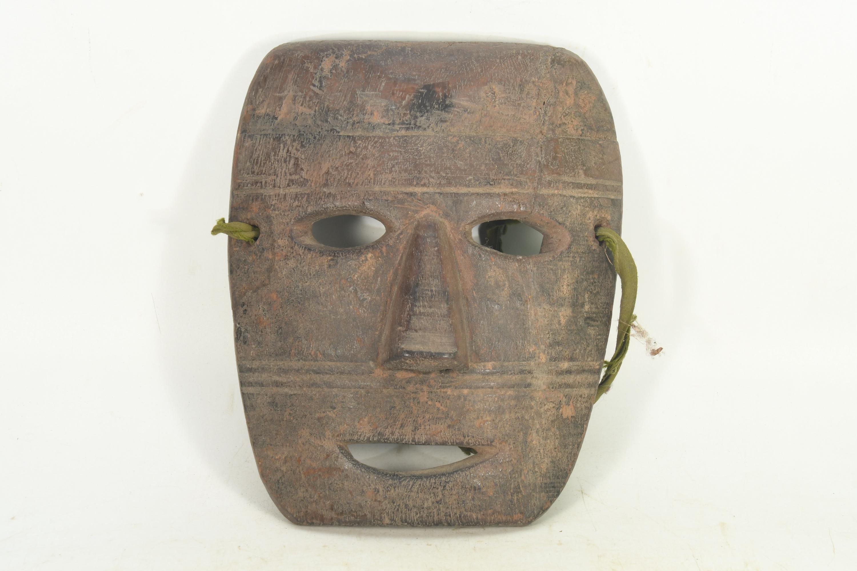 Handmade Wooden Devil Mask: Antique Tibetan Shaman Tribal Art