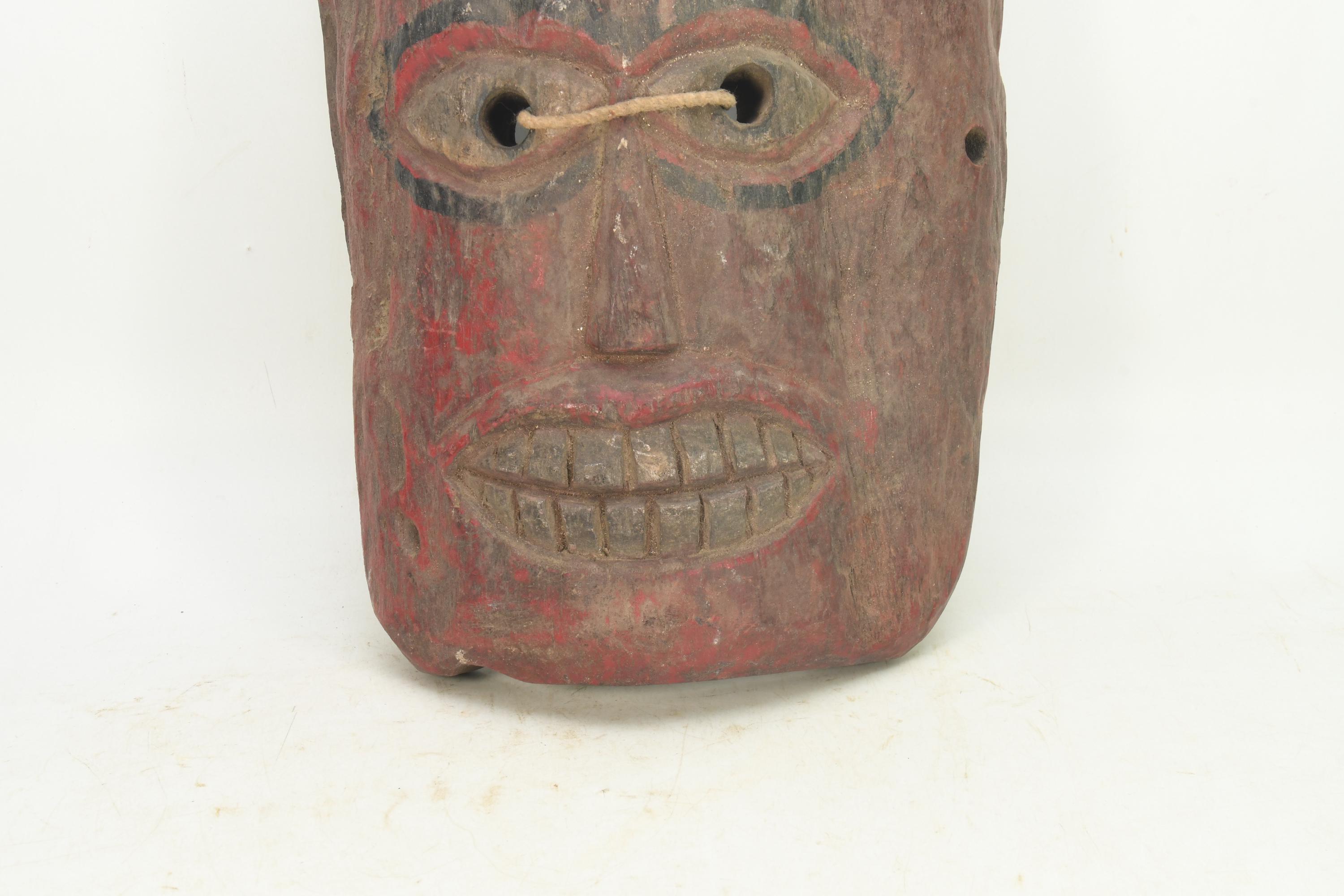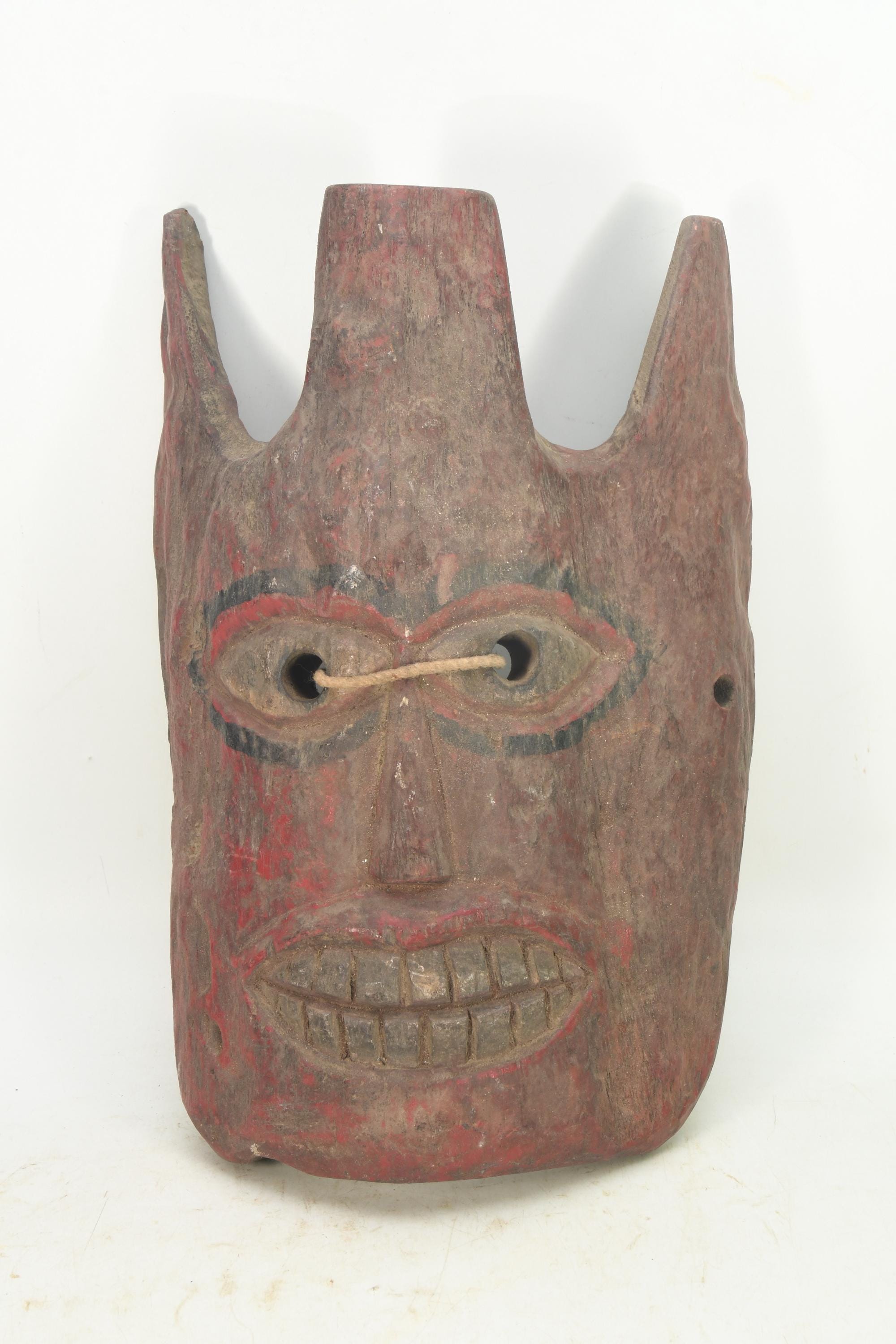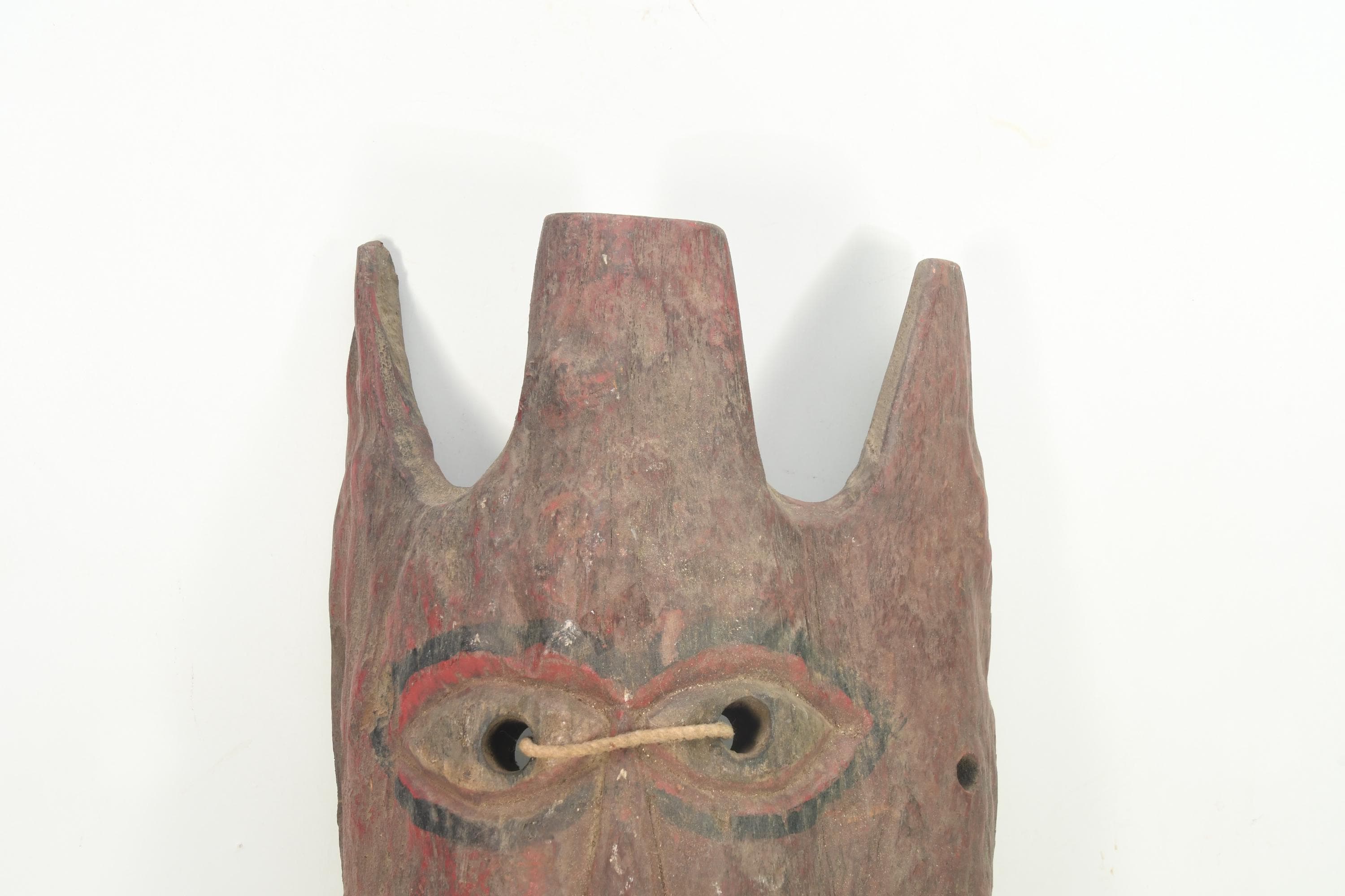 Handmade Tibetan Tharu Devil Mask: Vintage Tribal Shaman Decor