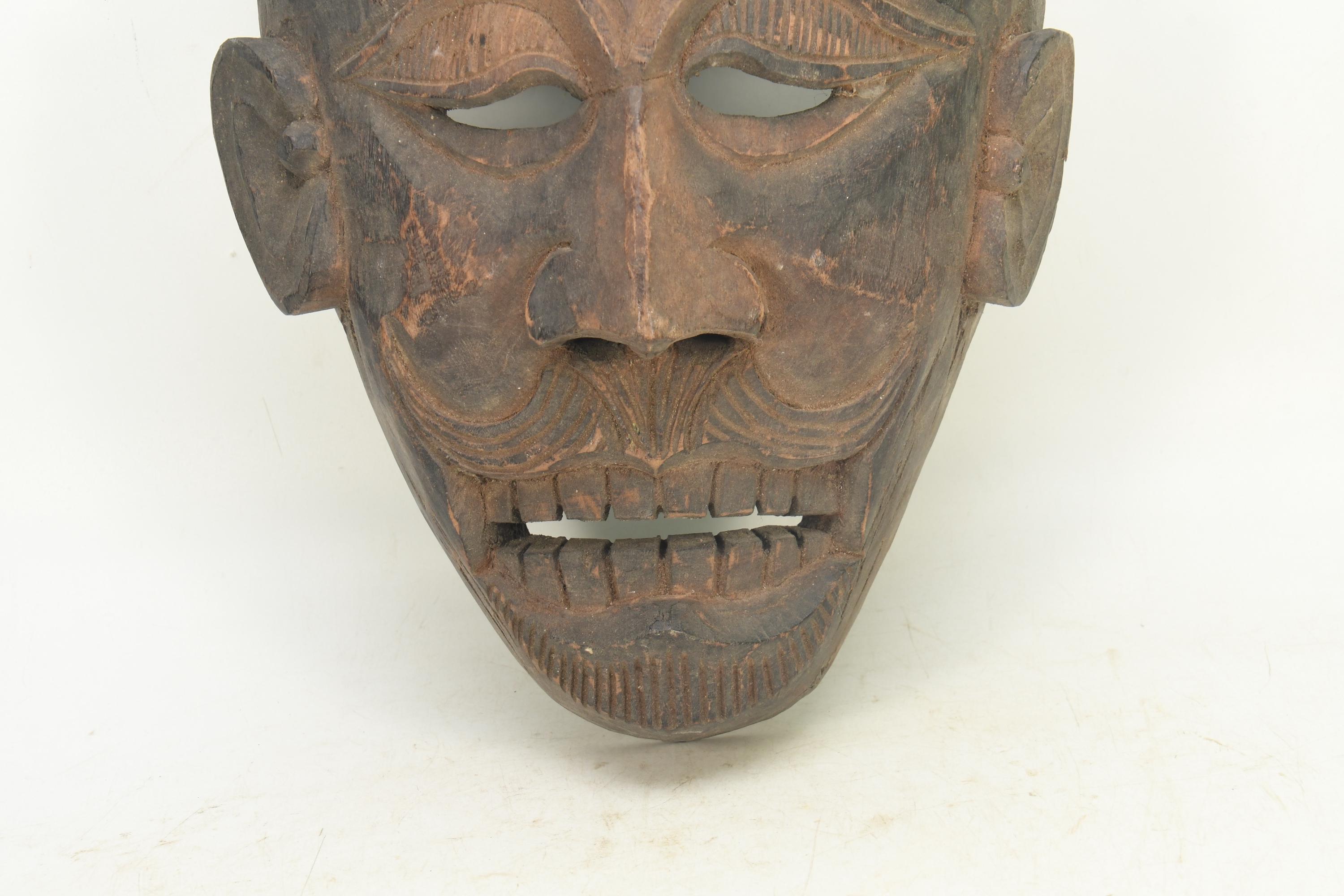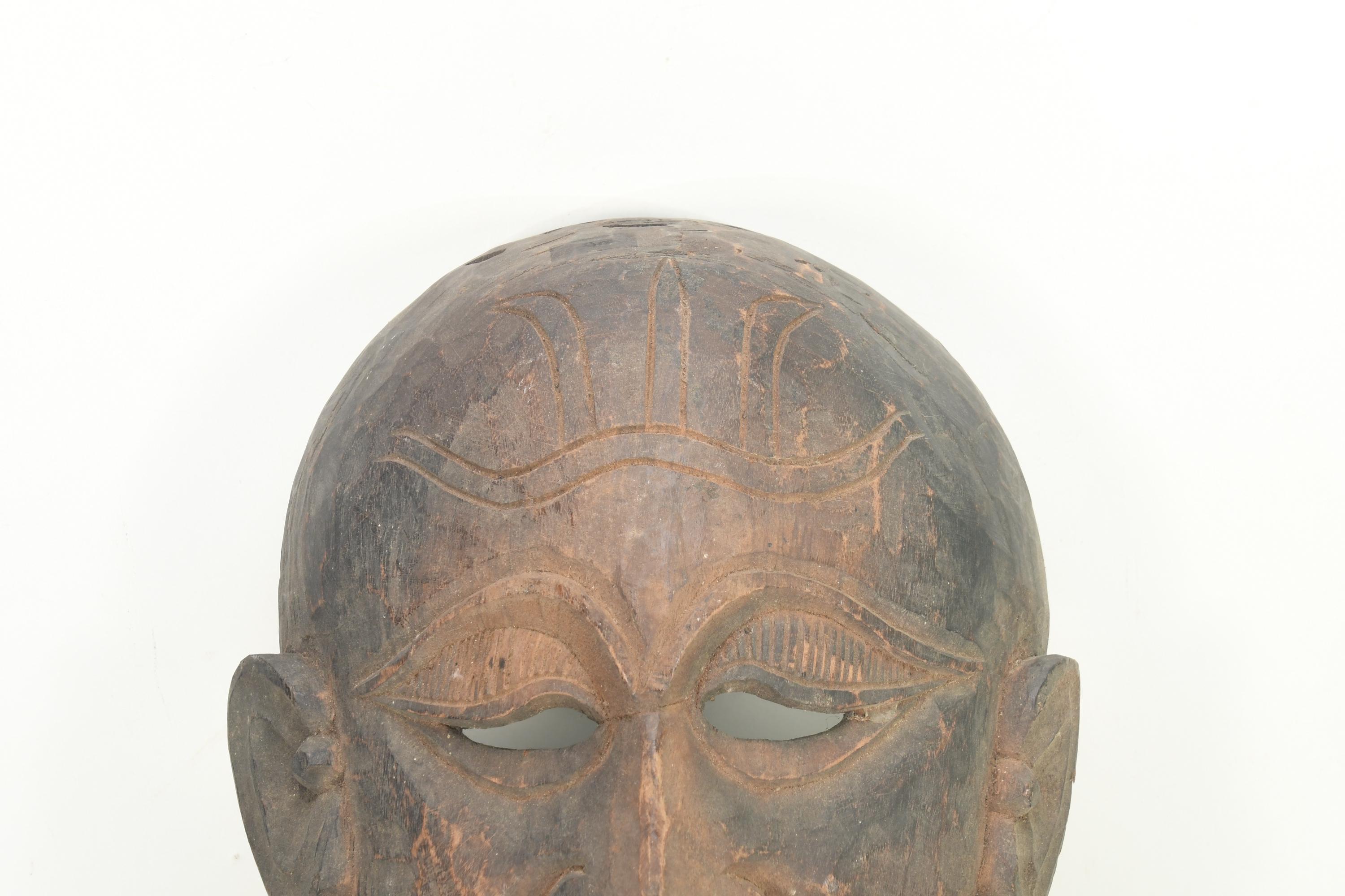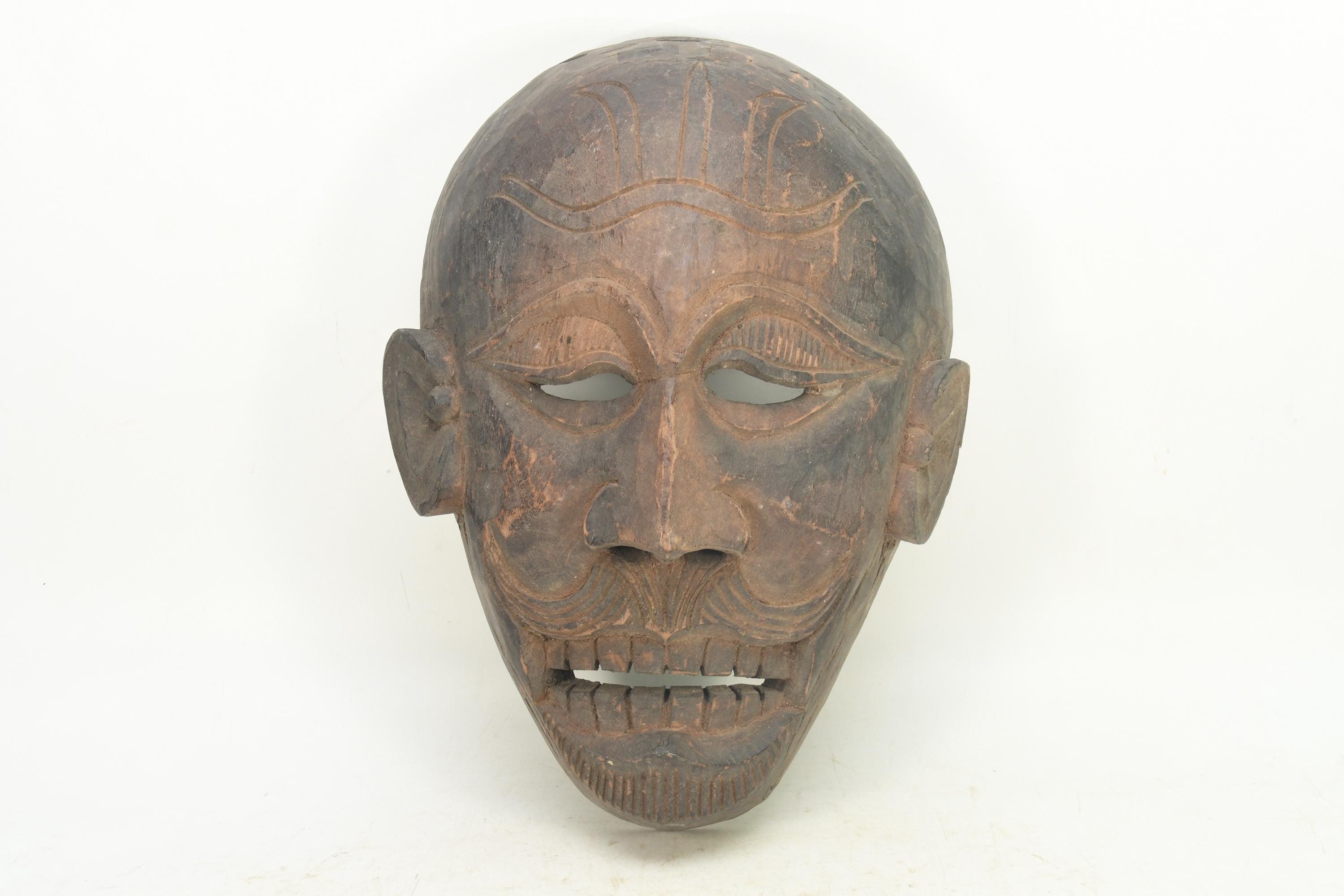Antique Tibetan Bearded Man Mask - Handmade Tribal Wall Art