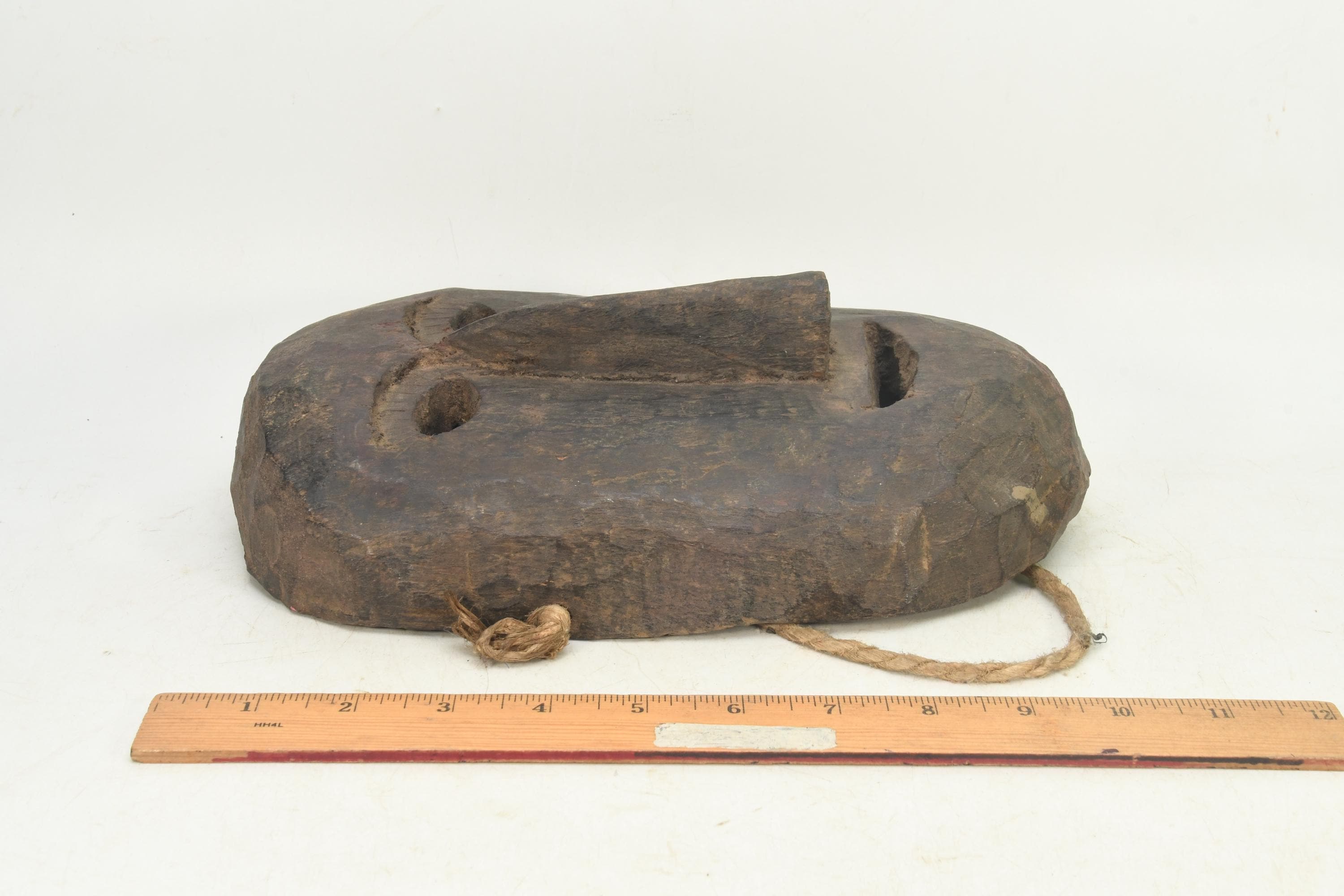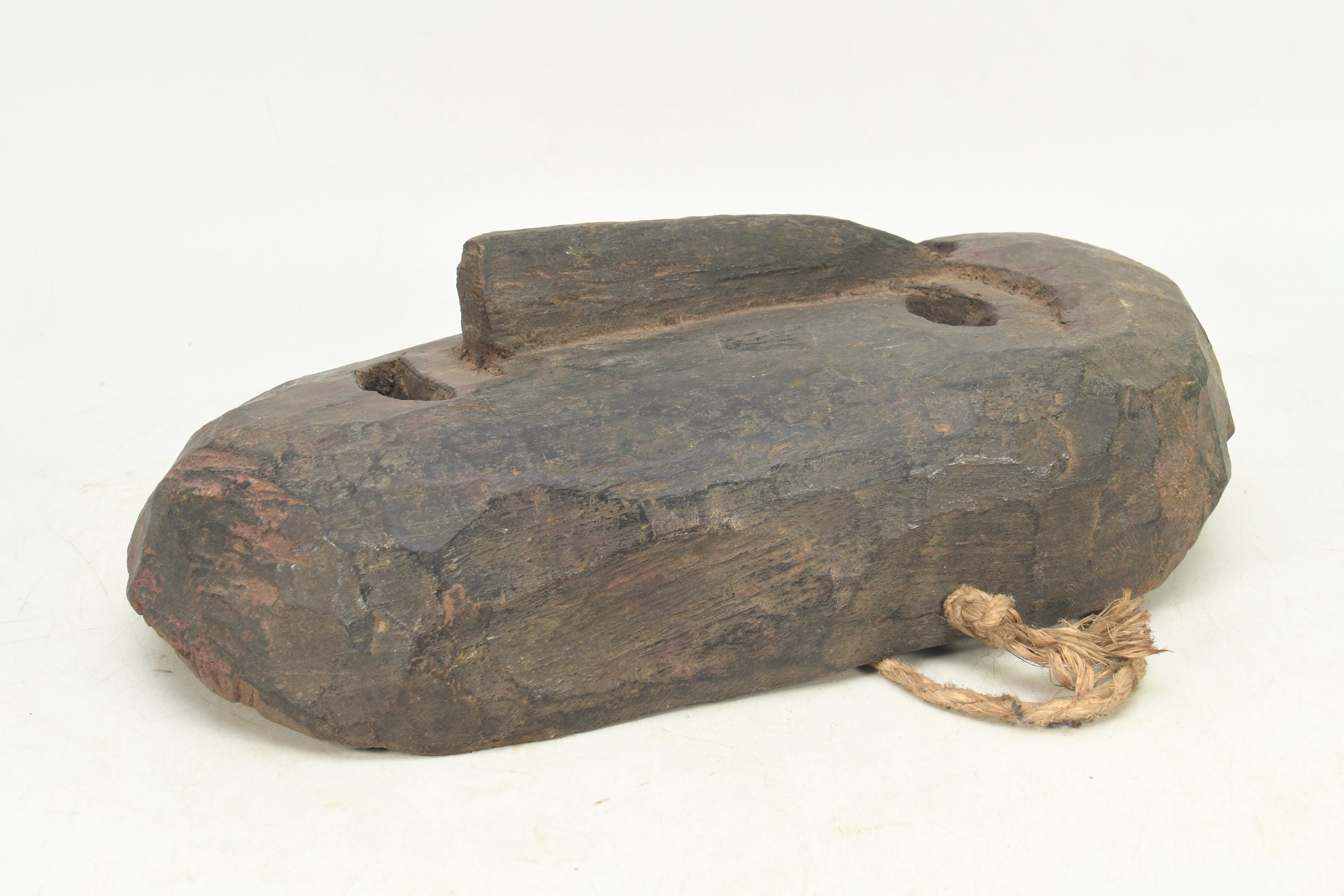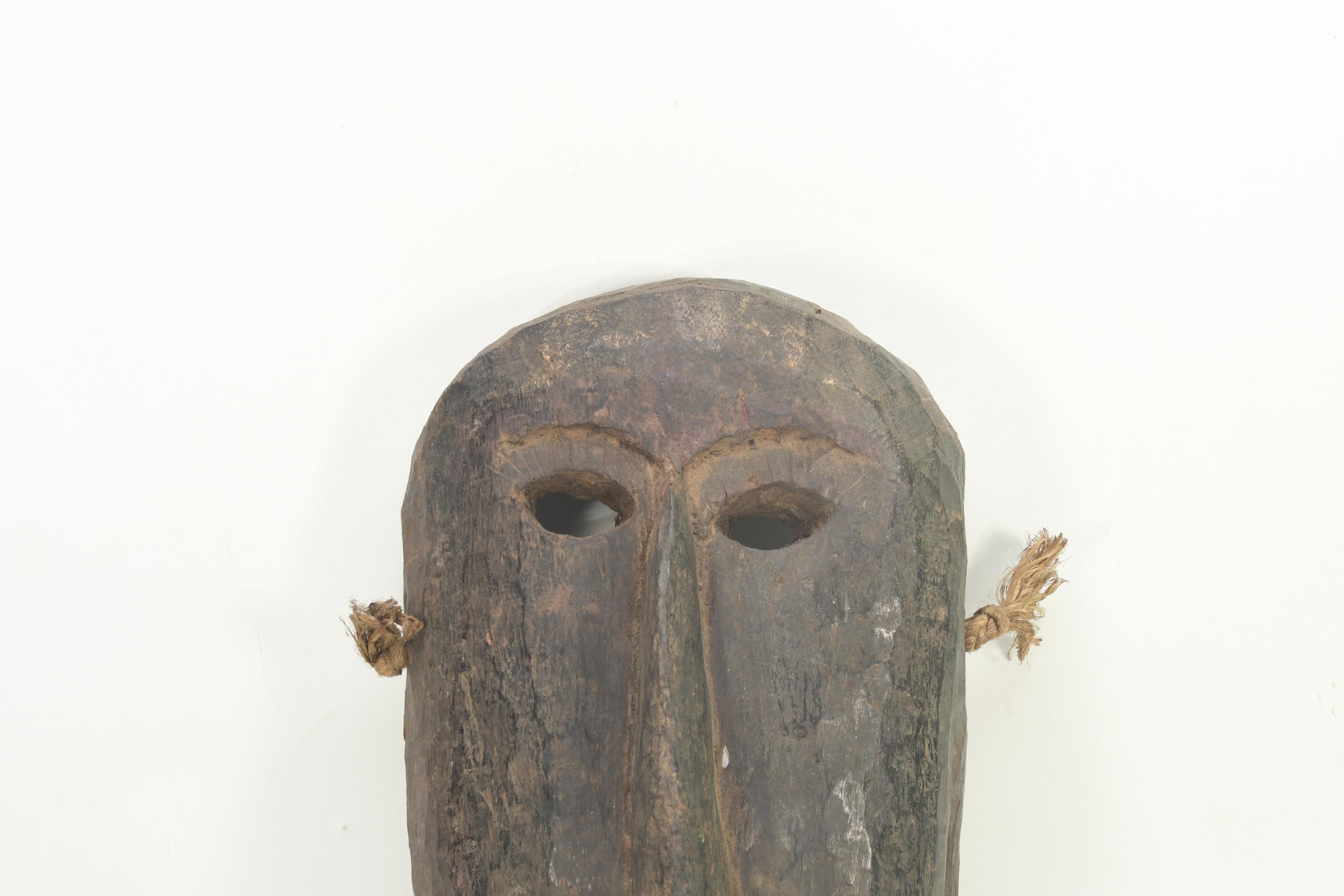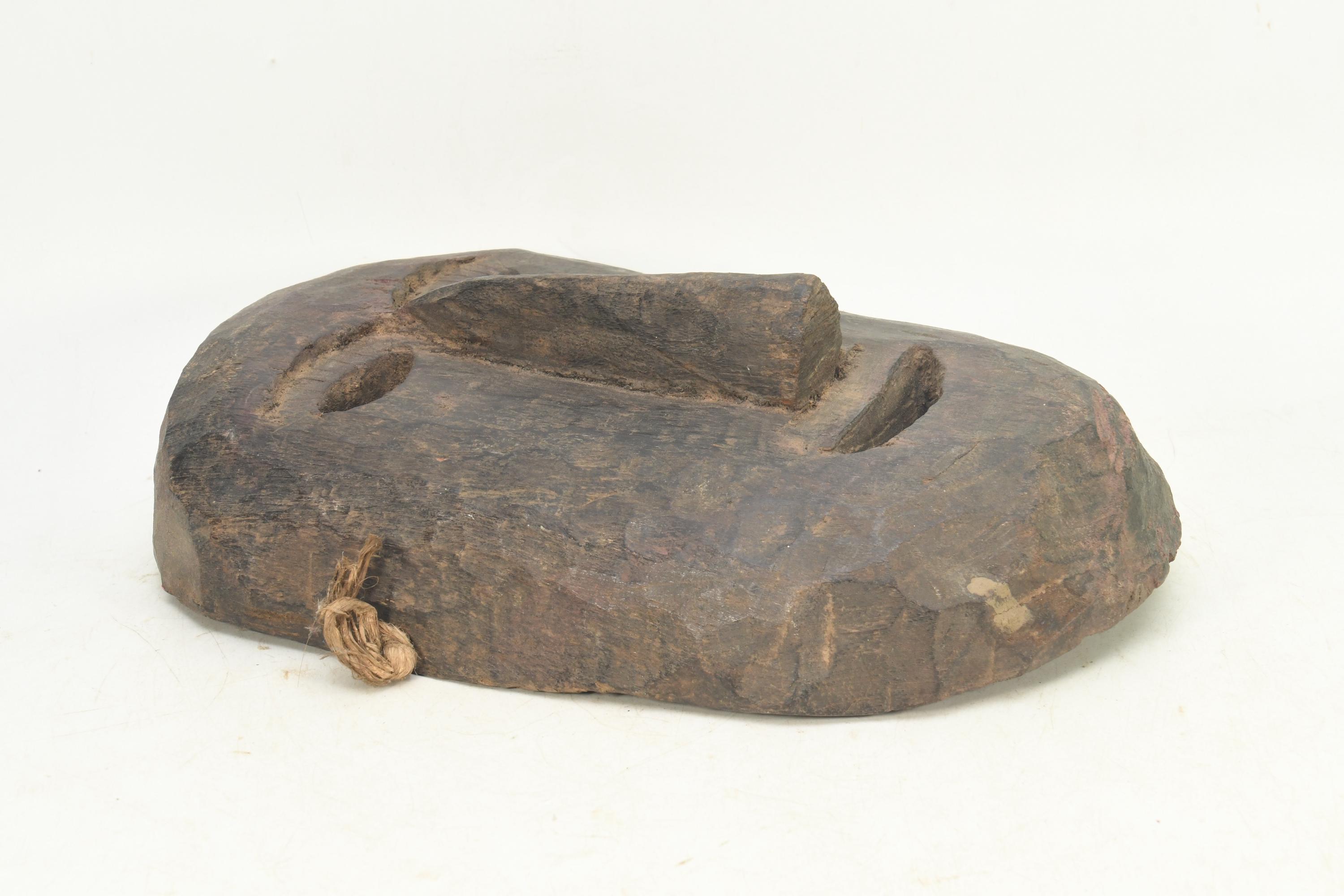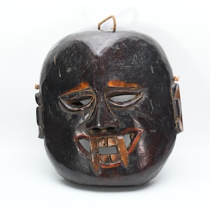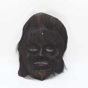 Hand Carved Antique Tharu Shaman Mask: Tibetan Tribal Wall Hanging