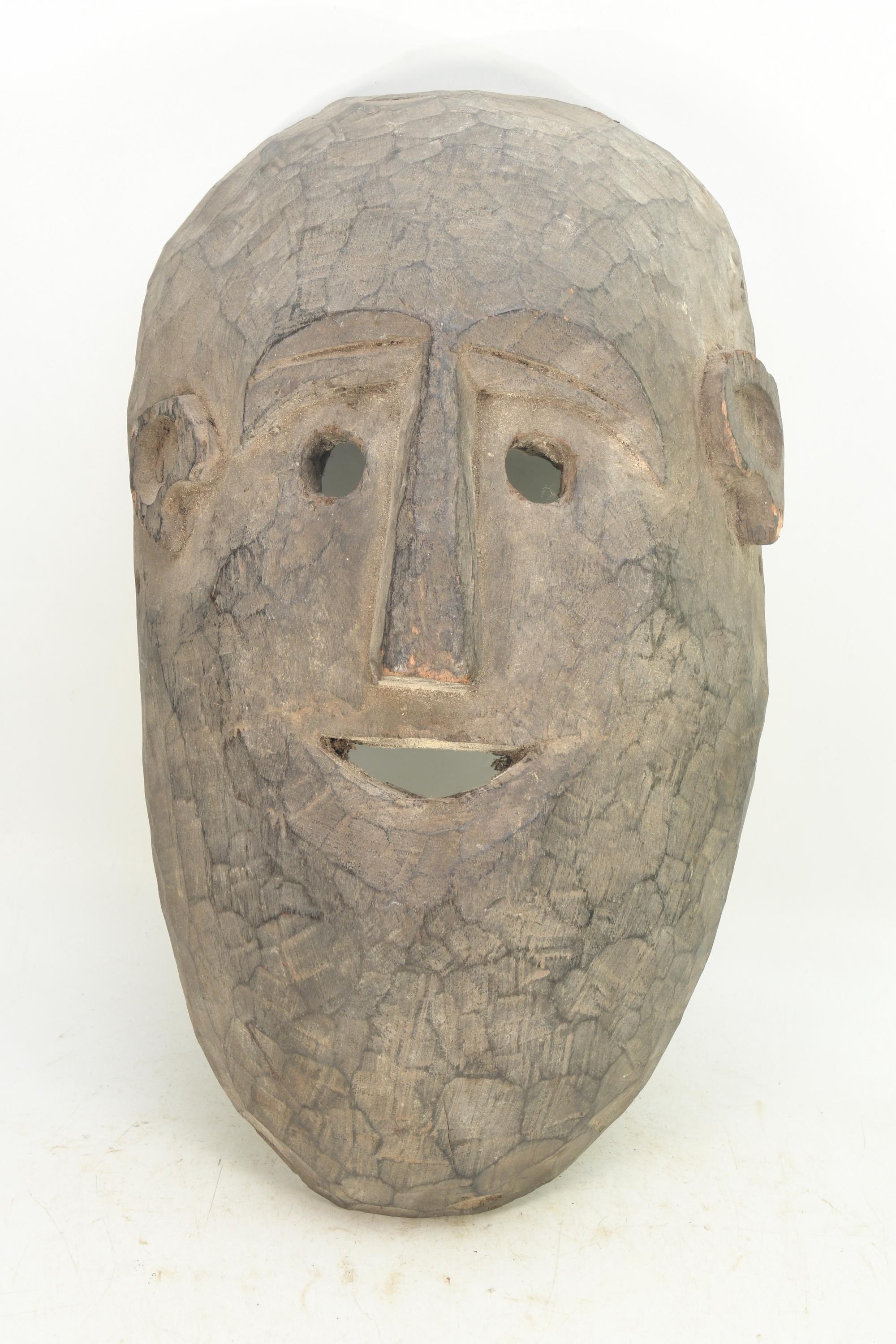 Handmade Antique Tharu Shaman Mask: Vintage Tribal Wall Decor