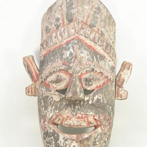 Lord Hanuman Face Carved Wooden Mask, Vintage Hindu Wall Hanging
