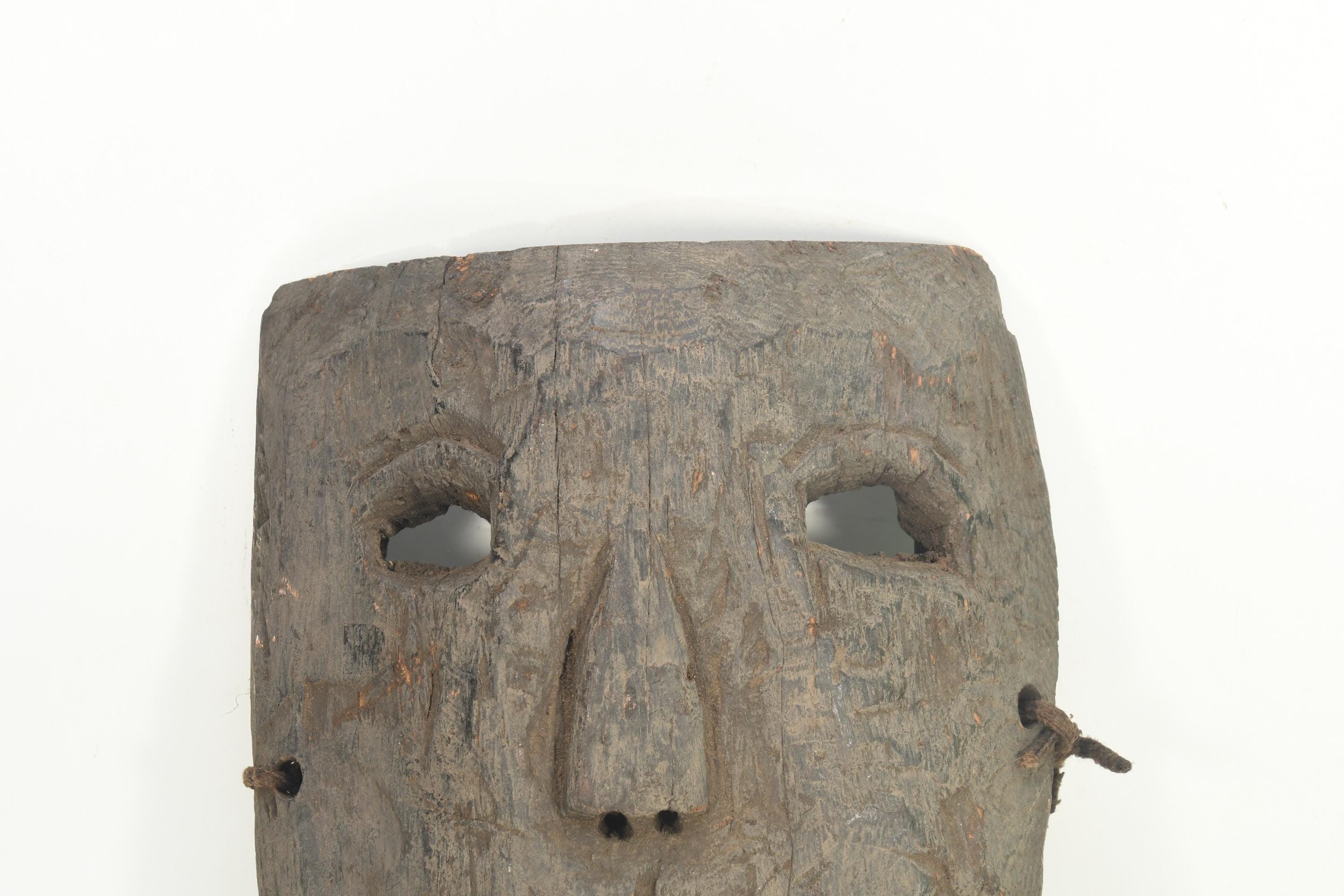 Wood Carved Antique Tibetan Tribal Shaman Lama Mask Handmade Ethnic Wall Hanging Collectible Decor