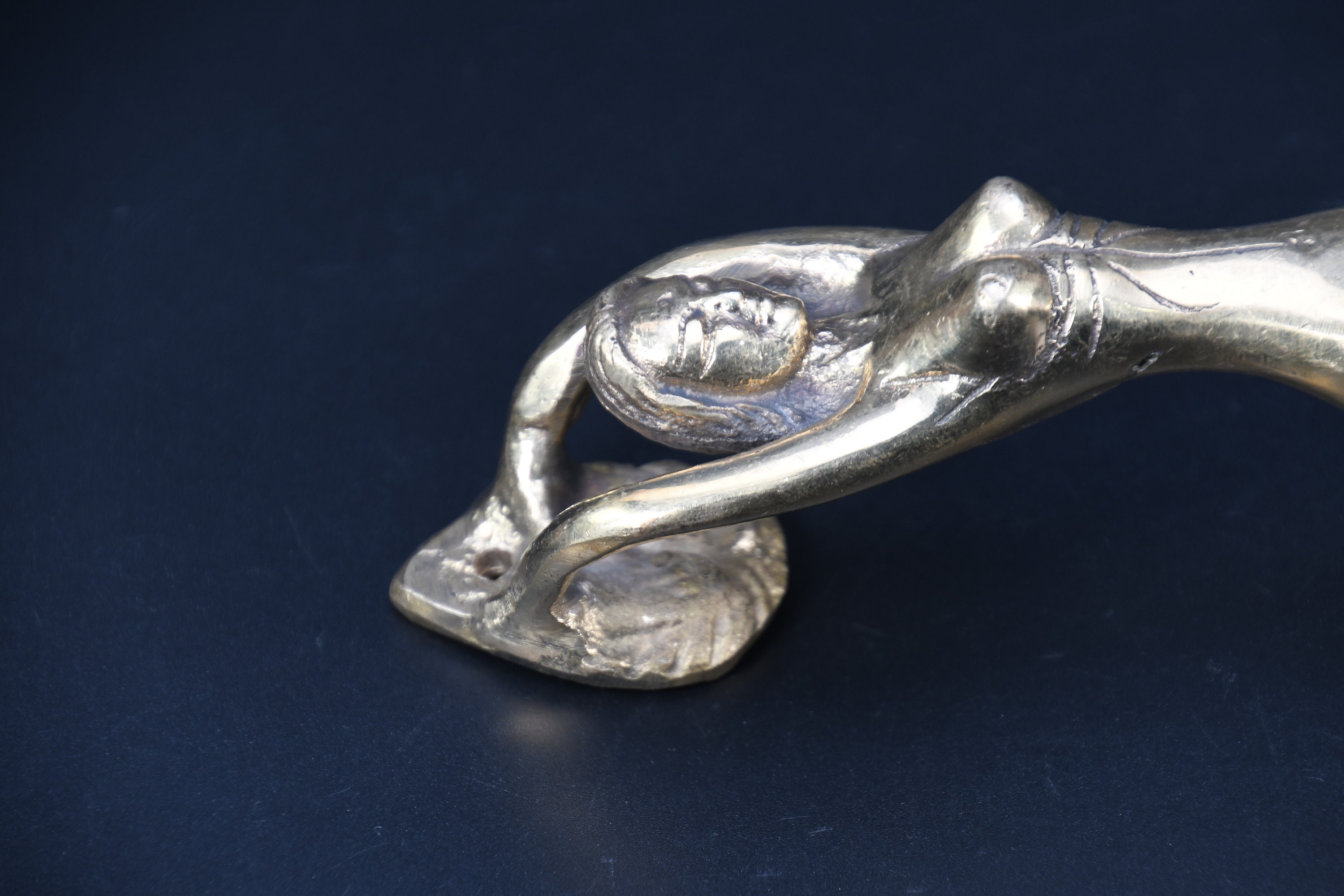 Hand Carved Bronze Door Handle, Antique Naga Goddess, Nepal