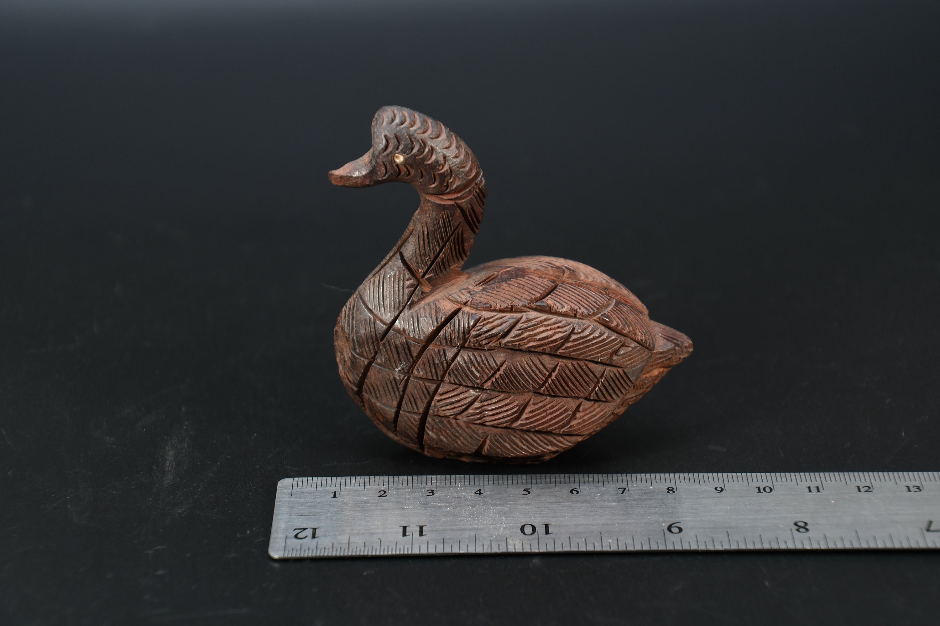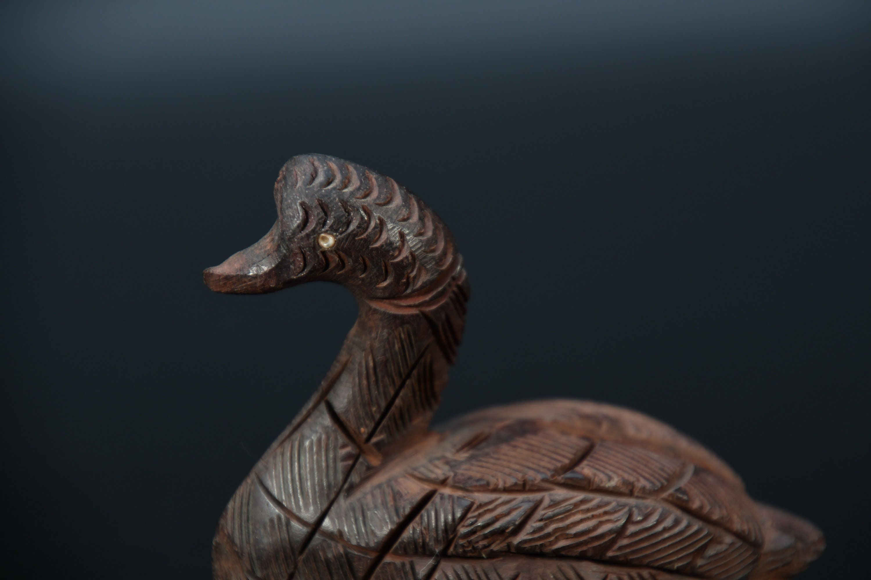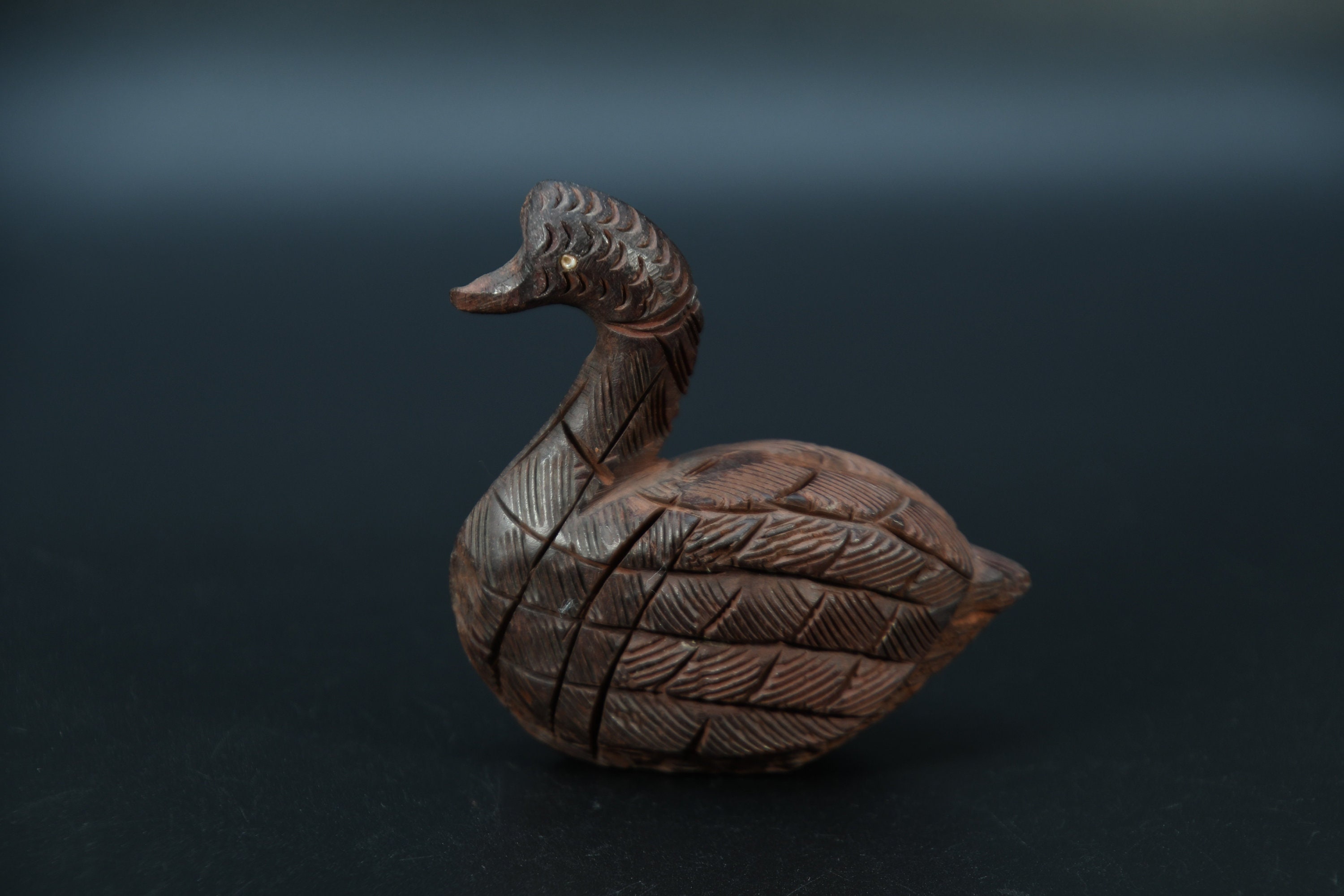 Hand Carved Wooden Duck Statue, Antique Nepal Collectible
