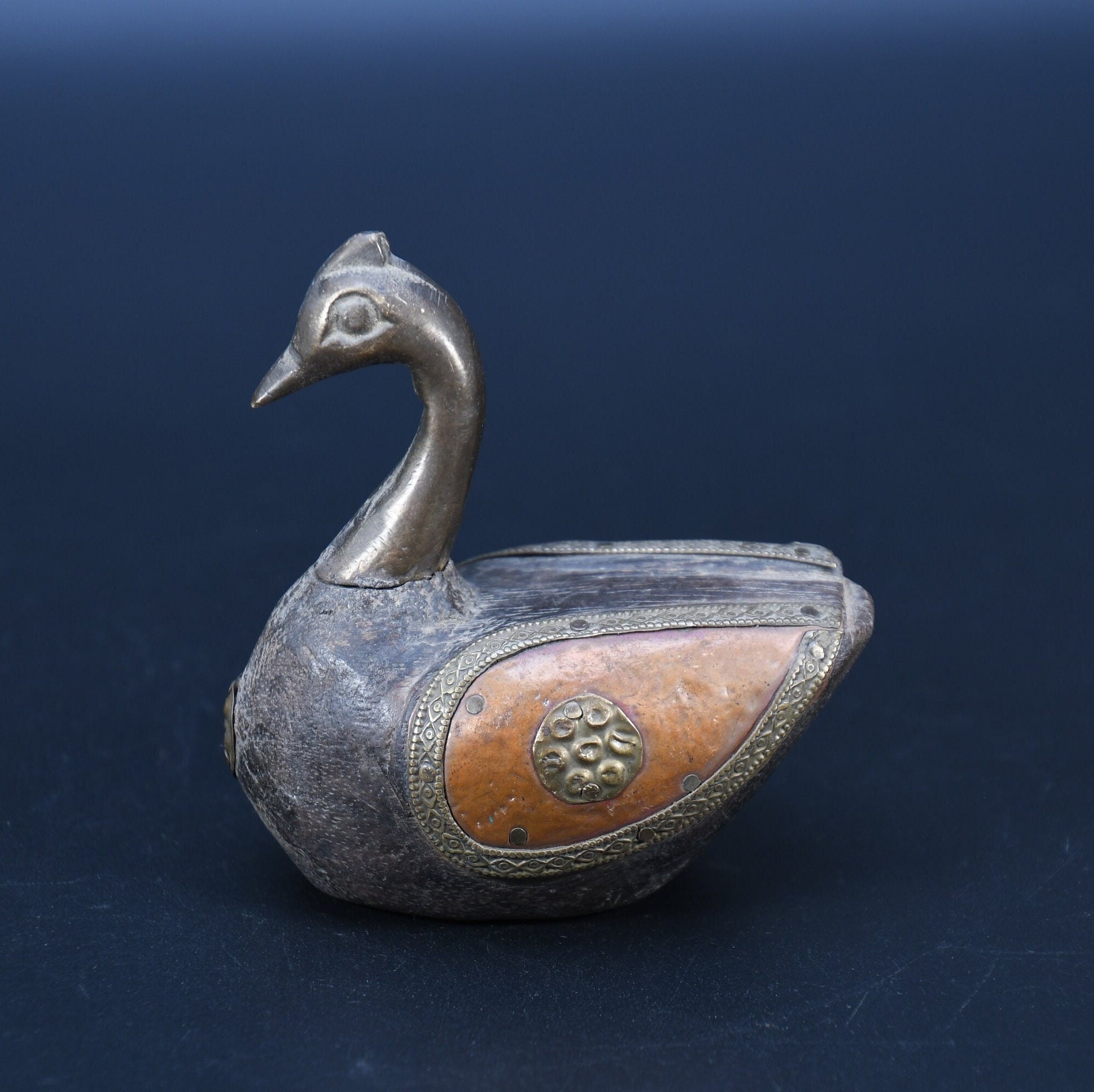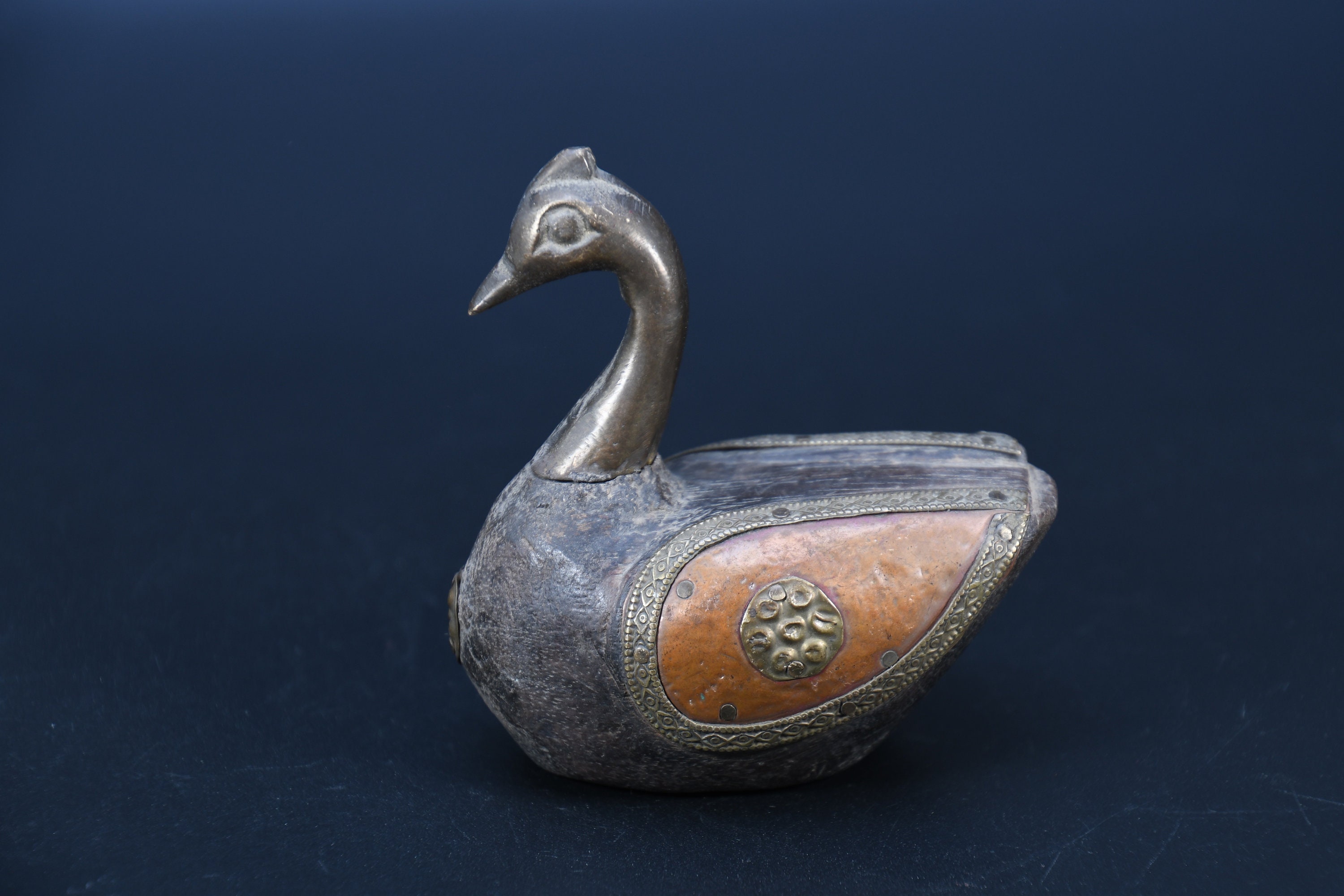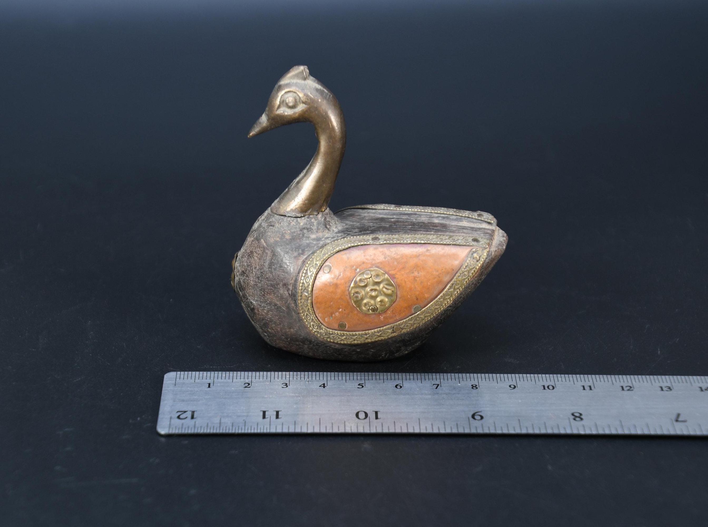 Vintage Brass Fitted Wooden Swan Statue, Religious Decor