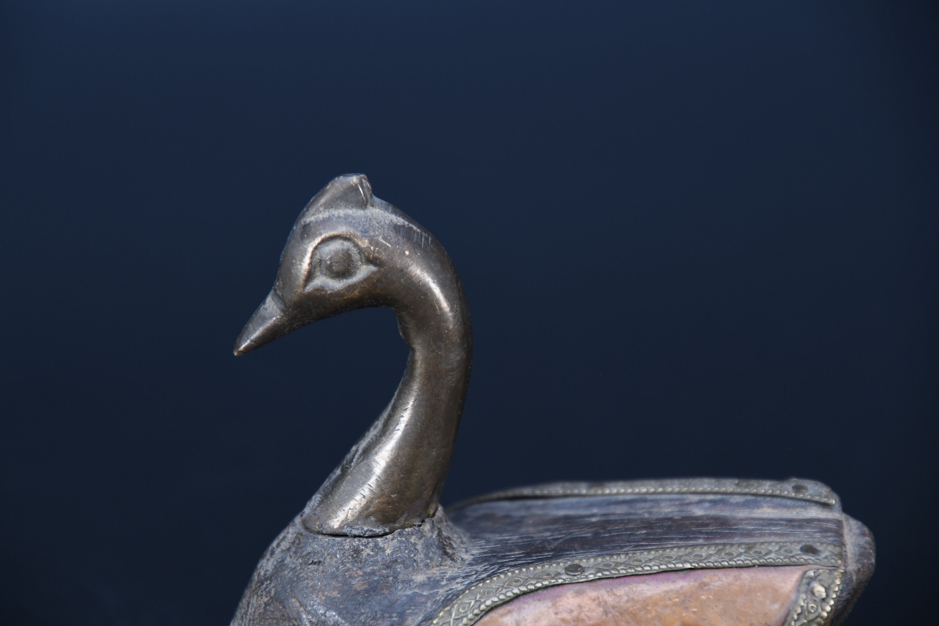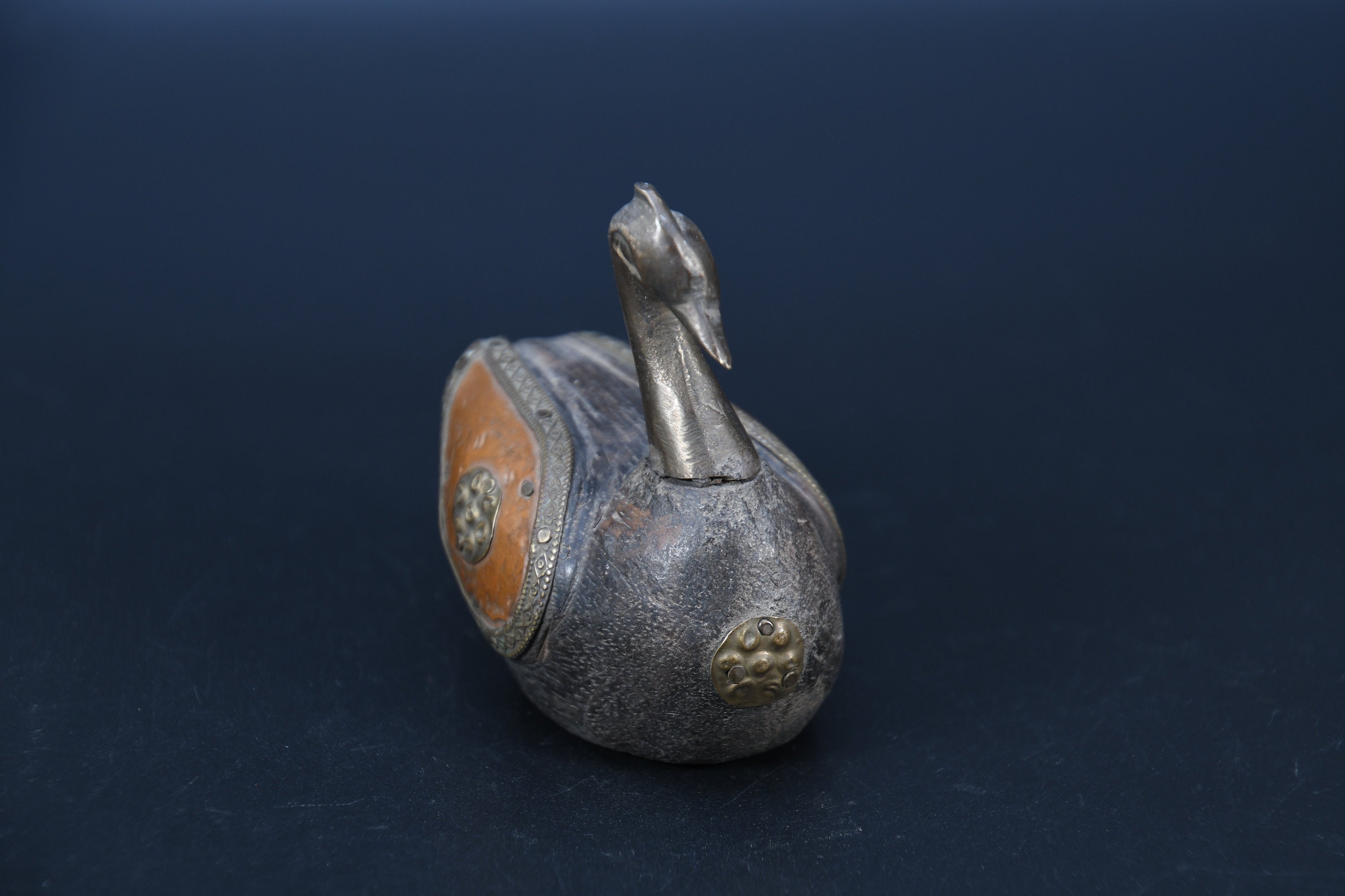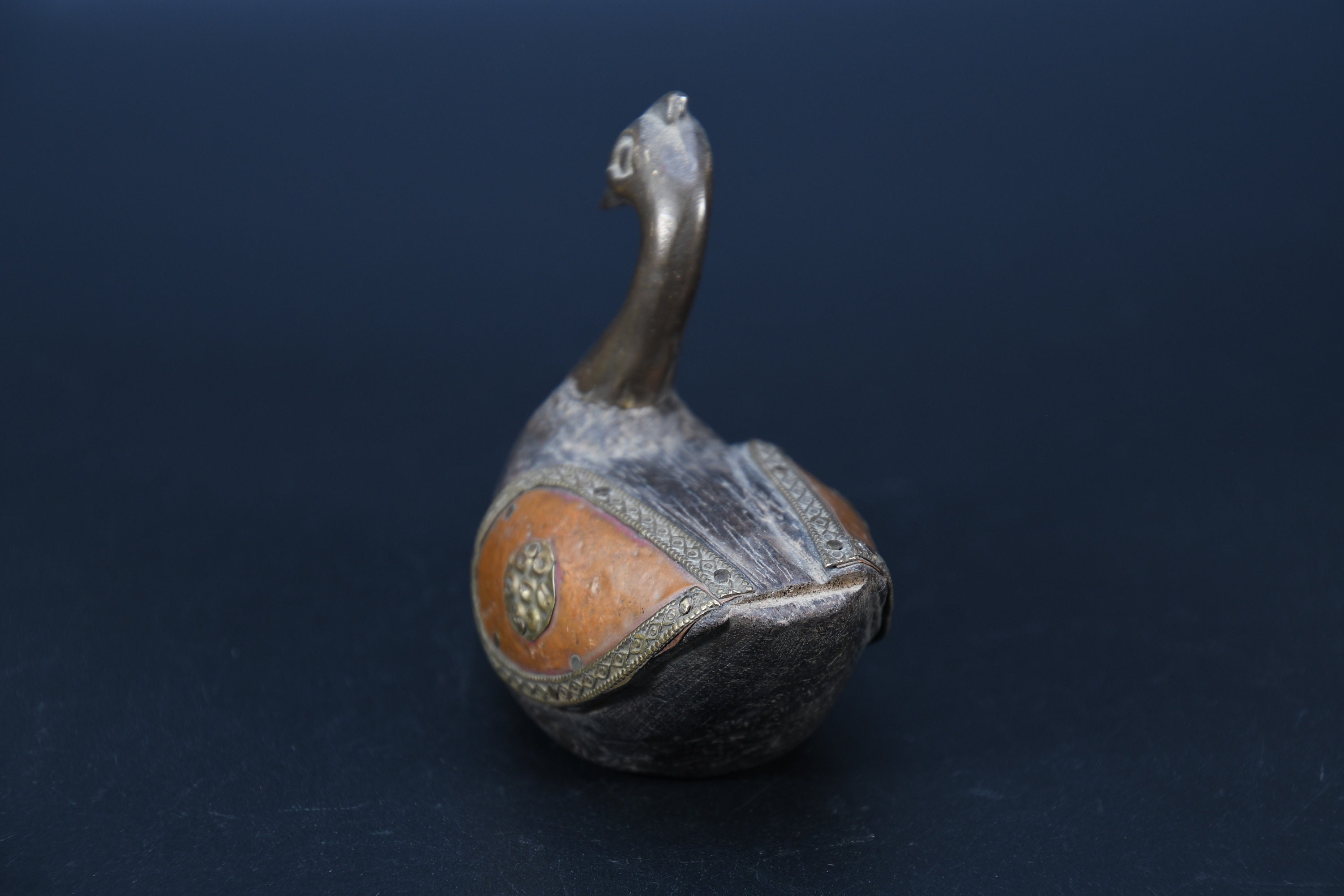 Vintage Brass Fitted Wooden Swan Statue, Religious Decor