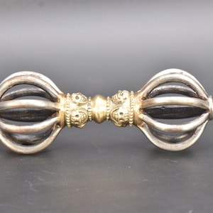 This Vajra is to be used during empowerments. Usually needs two Vajras, one for the Mandala which is tied to the Sung-Tak with five colored cord and the second one for the Vajra Master. Sanskrit word vajra or Dorje in tibetan is defined as "diamond" or "adamantine". As such, the word vajra sometimes signifies enlightenment, or the absolute reality of shunyata, emptiness. Dorje offers protection and envokes blessings.