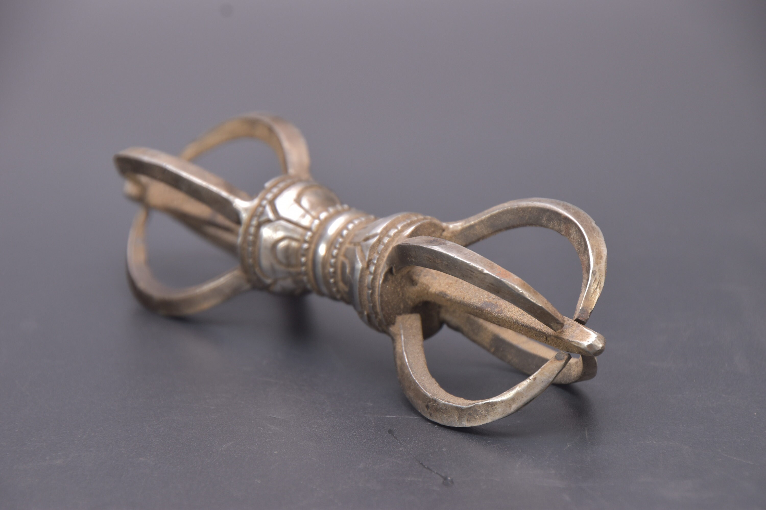 Vajra is a Sanskrit word meaning both thunderbolt and diamond. It is a weapon which is used as a ritual object to symbolize both the properties of a diamond (indestructibility) and a thunderbolt (irresistible force). The five-pronged vajra is the most commonly seen vajra.