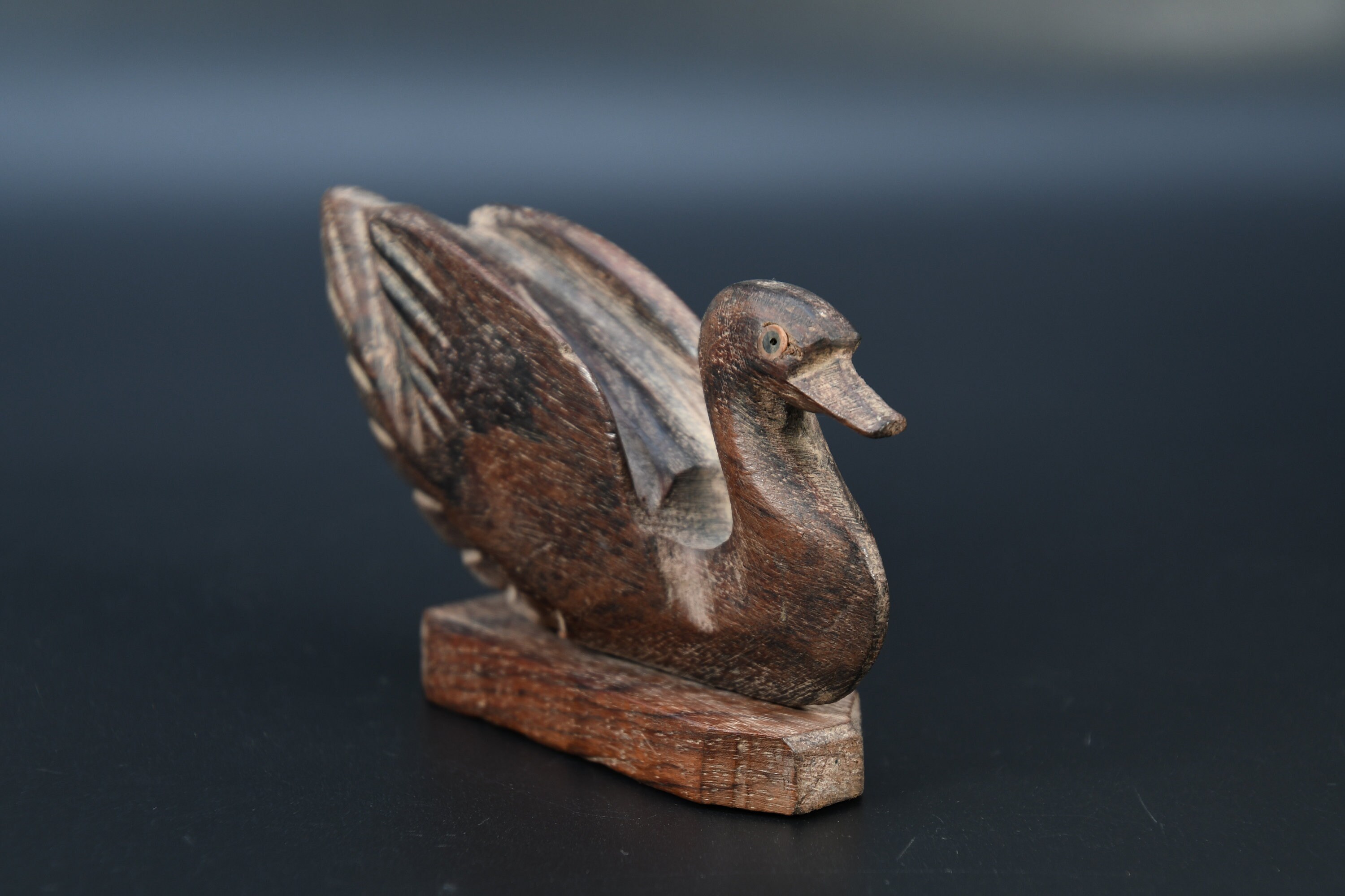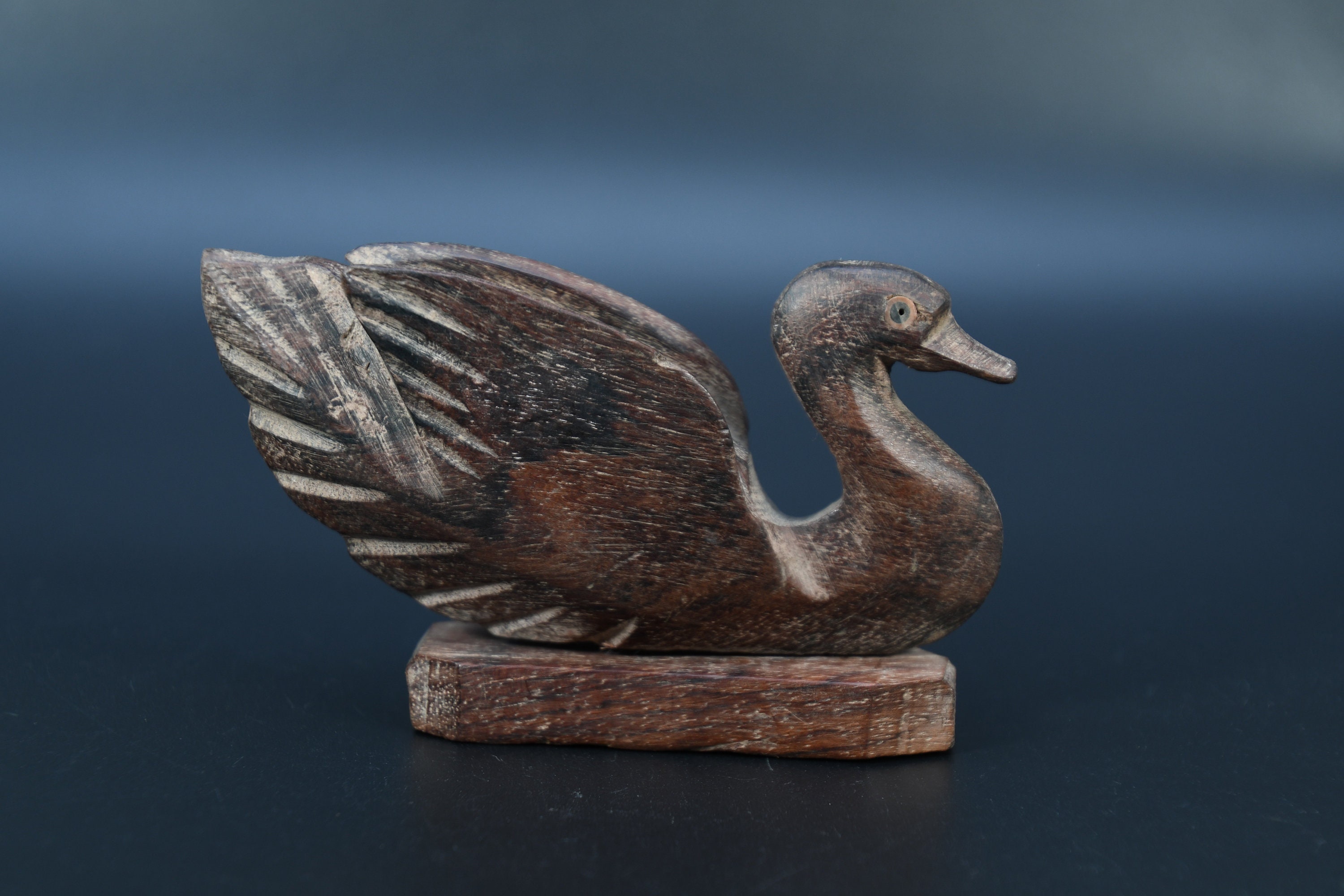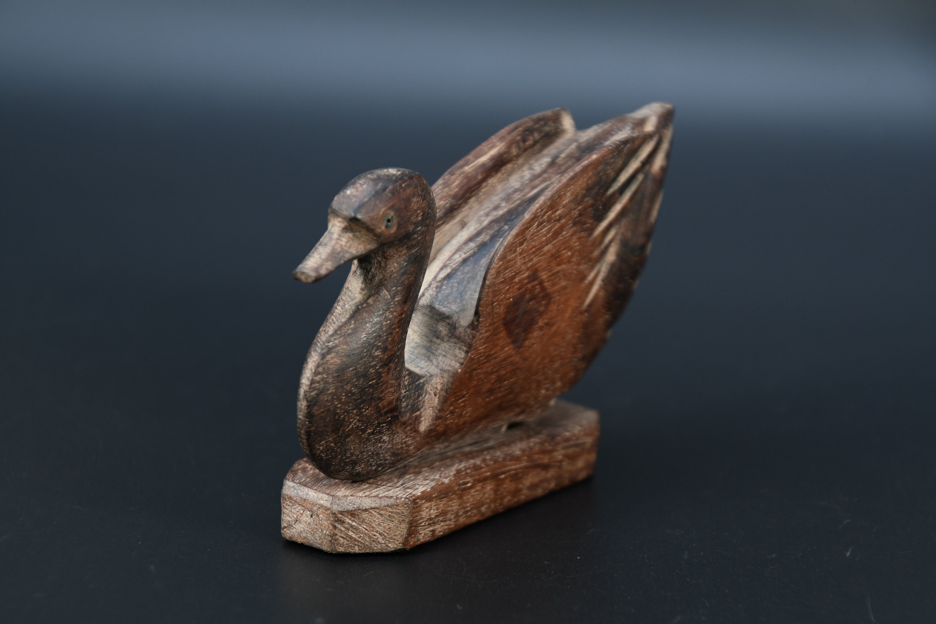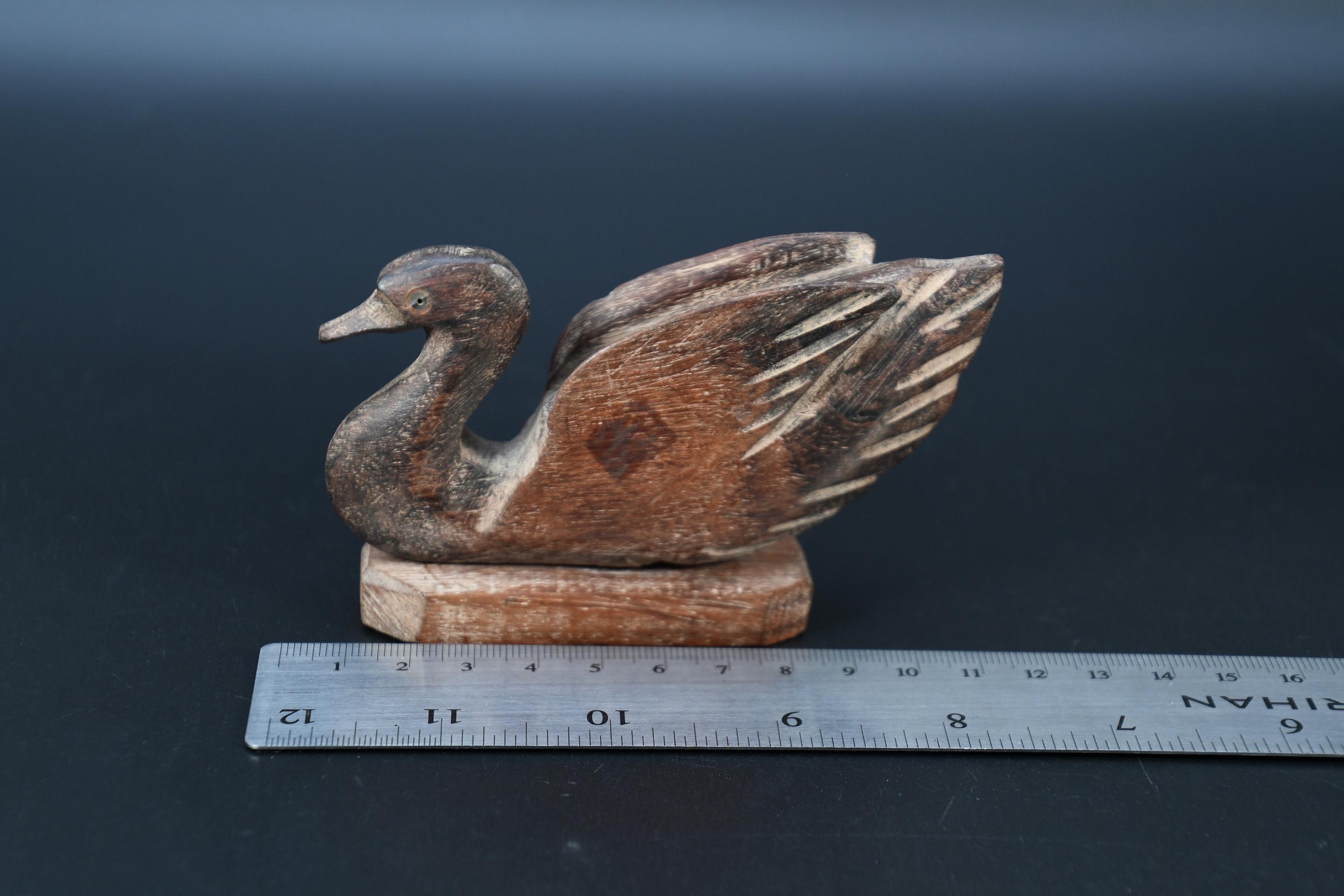 Hand Crafted Wooden Duck Statue Old Vintage Rare Brass Fitted Wooden Swan Figure Nepal