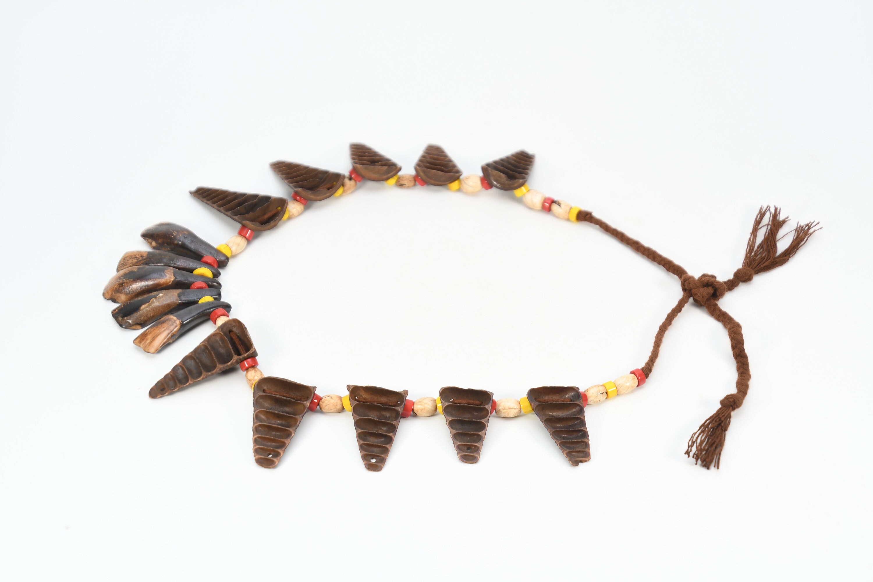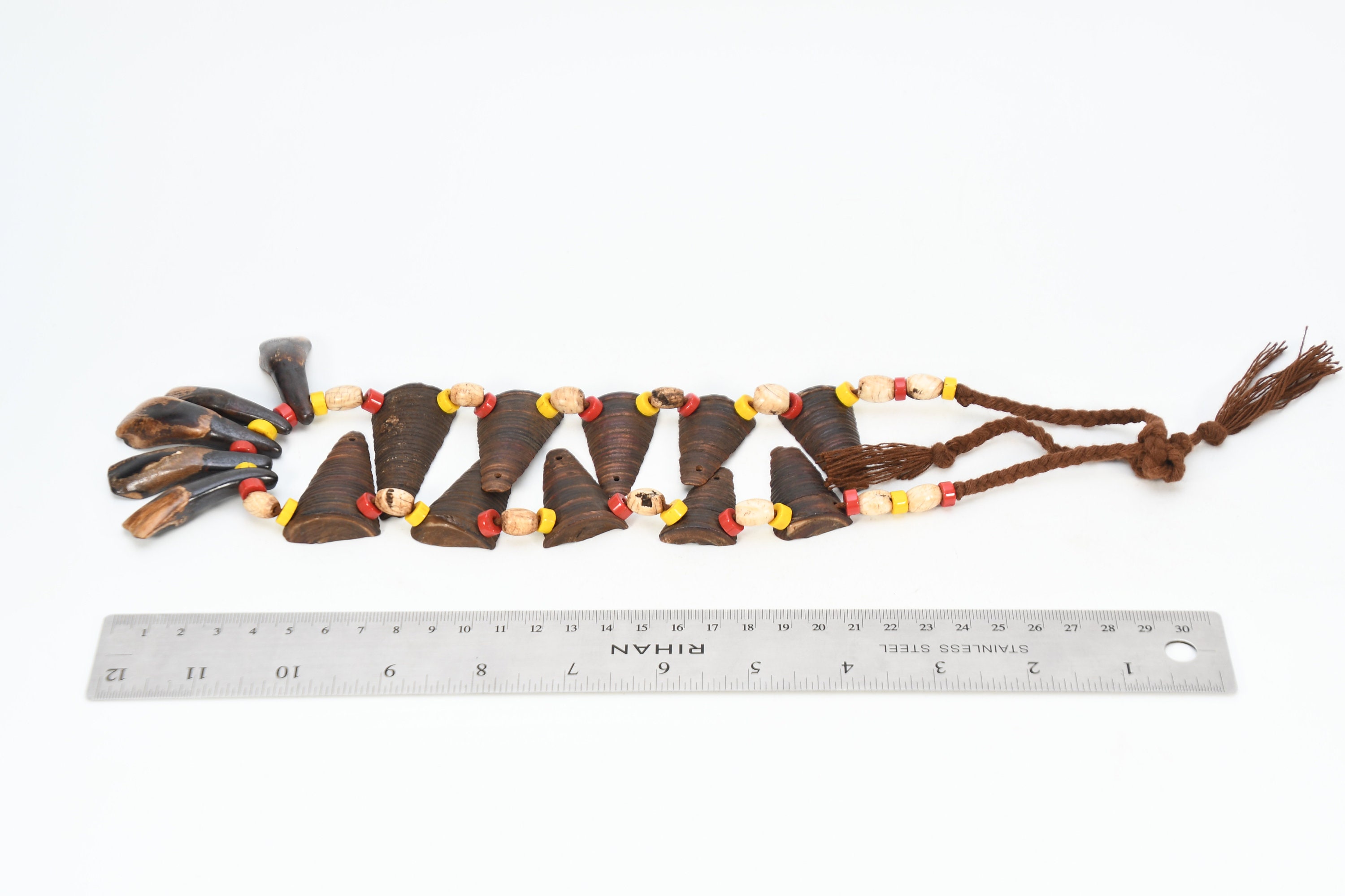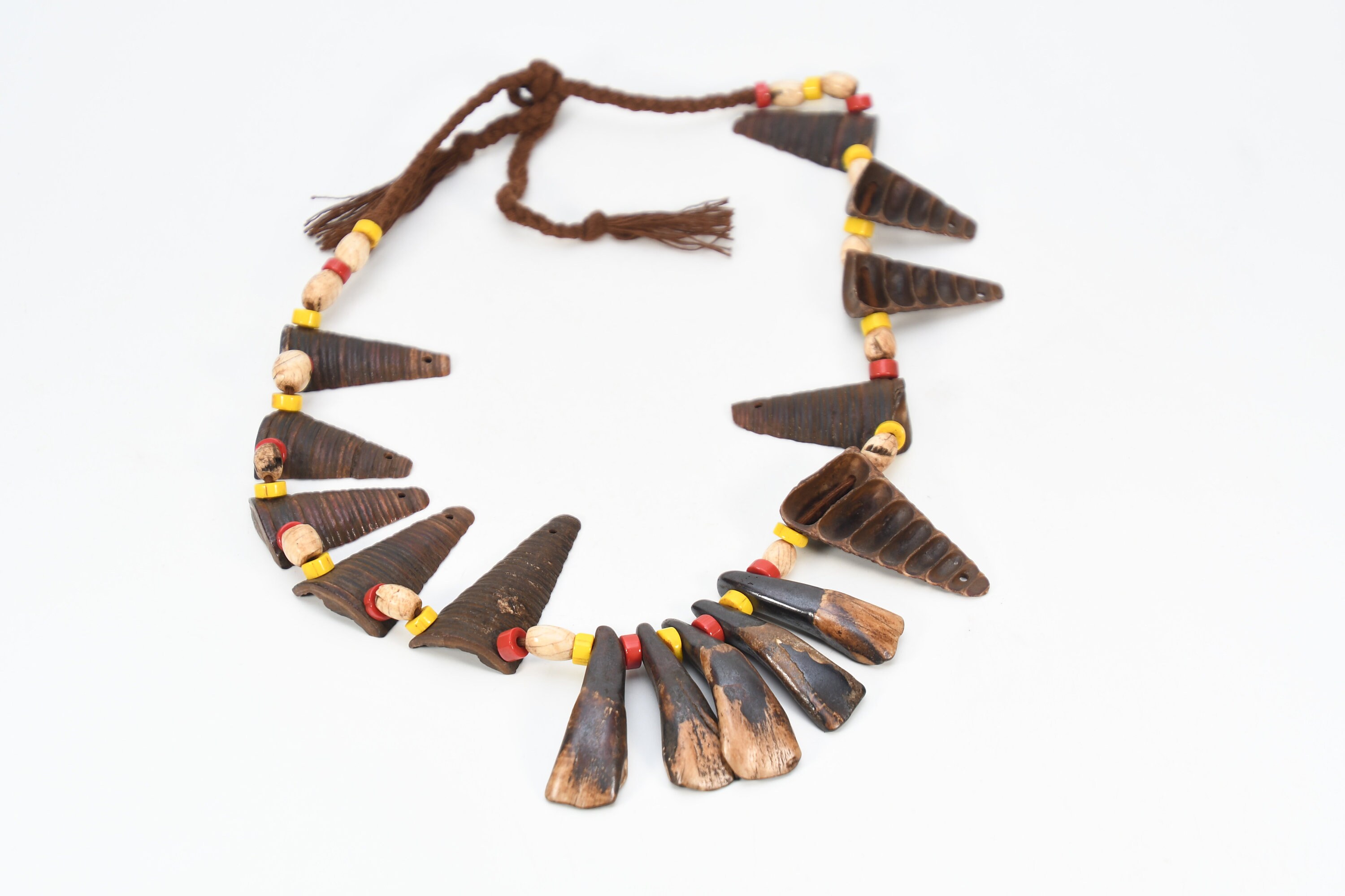 Tibetan Buffalo Teeth Necklace: Conch Shell, Bone & Turquoise Naga Mala