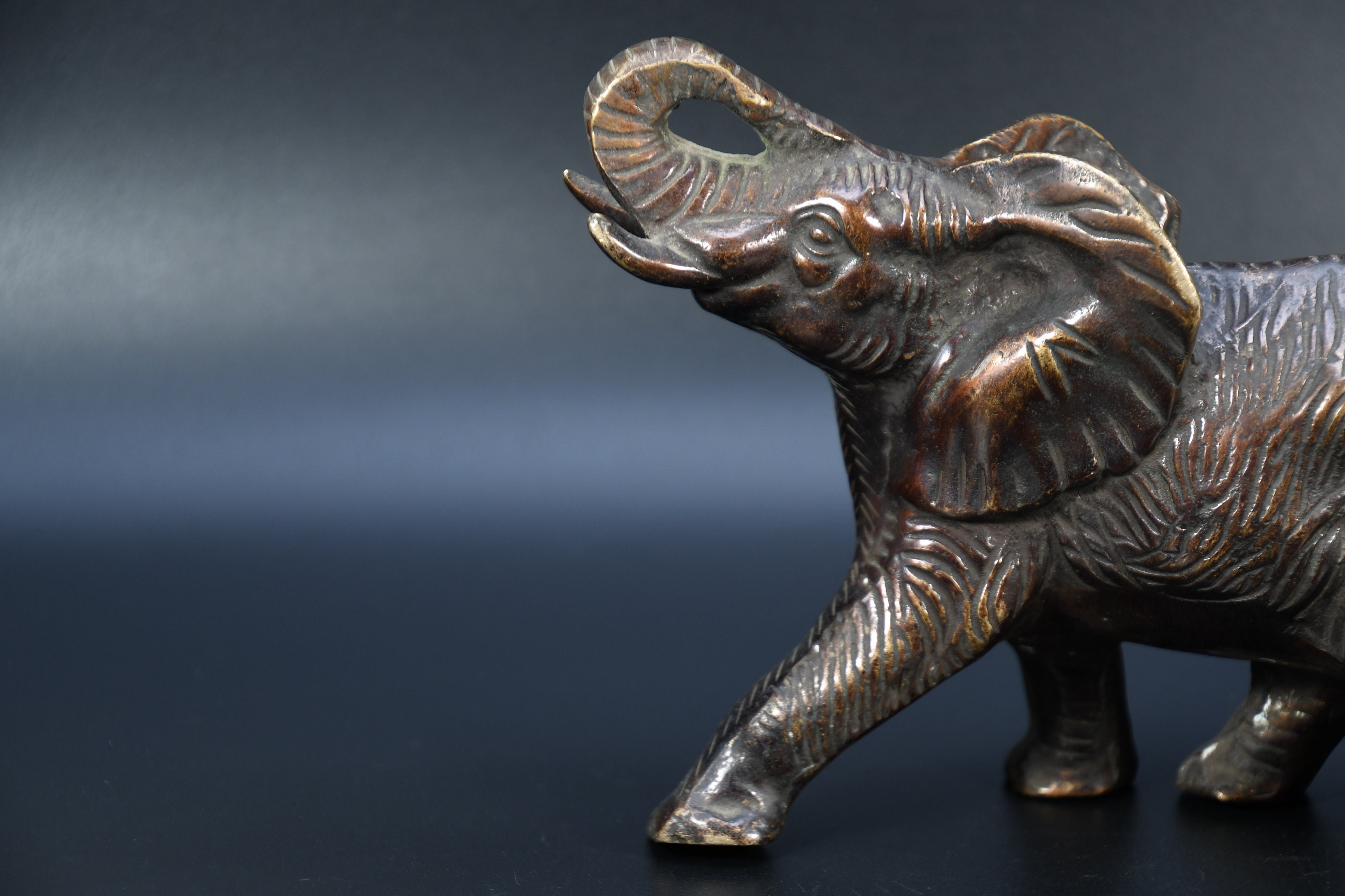 Vintage Brass Elephant Figurine, Hand Carved Ethnic Nepal Decor