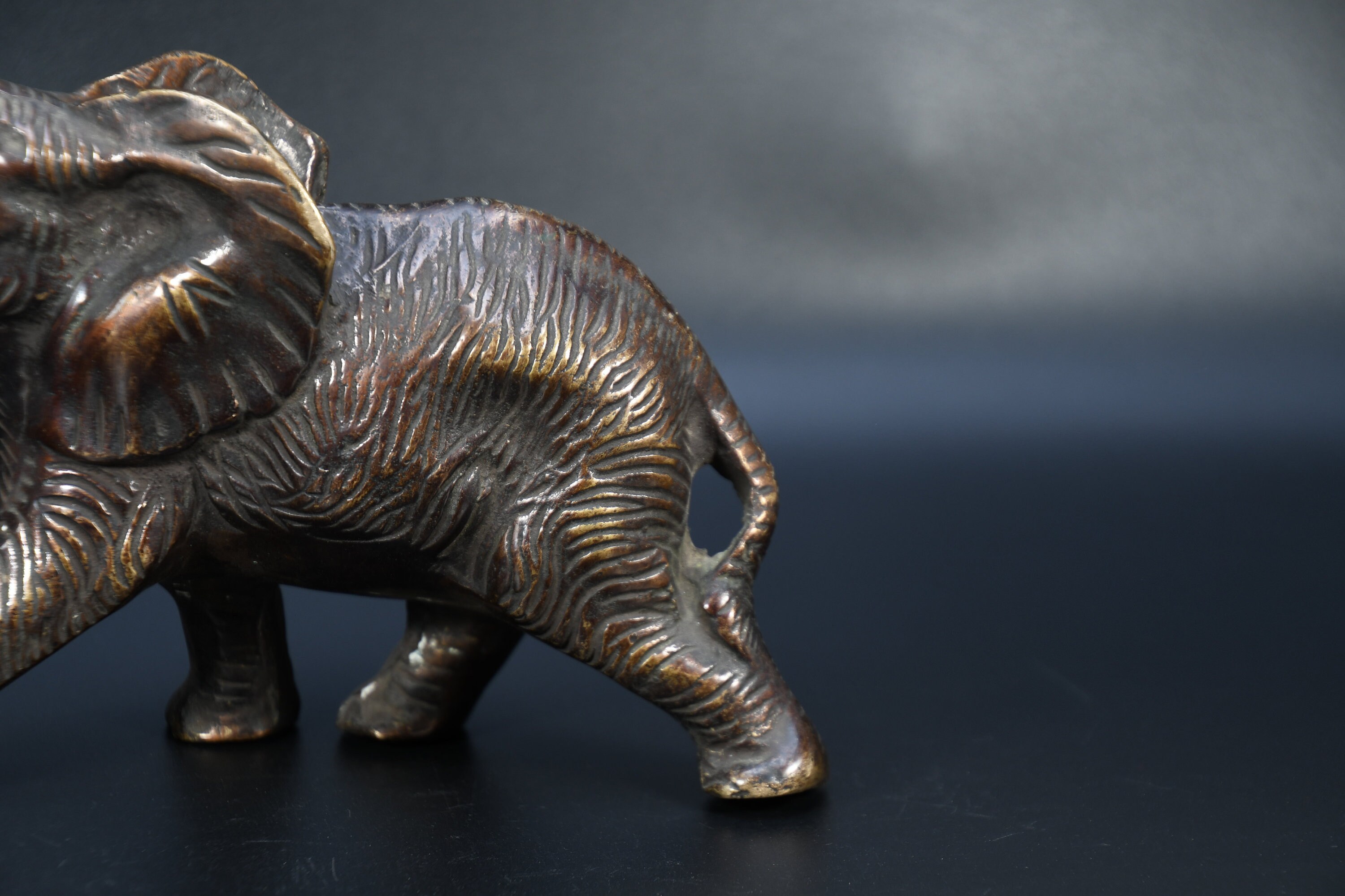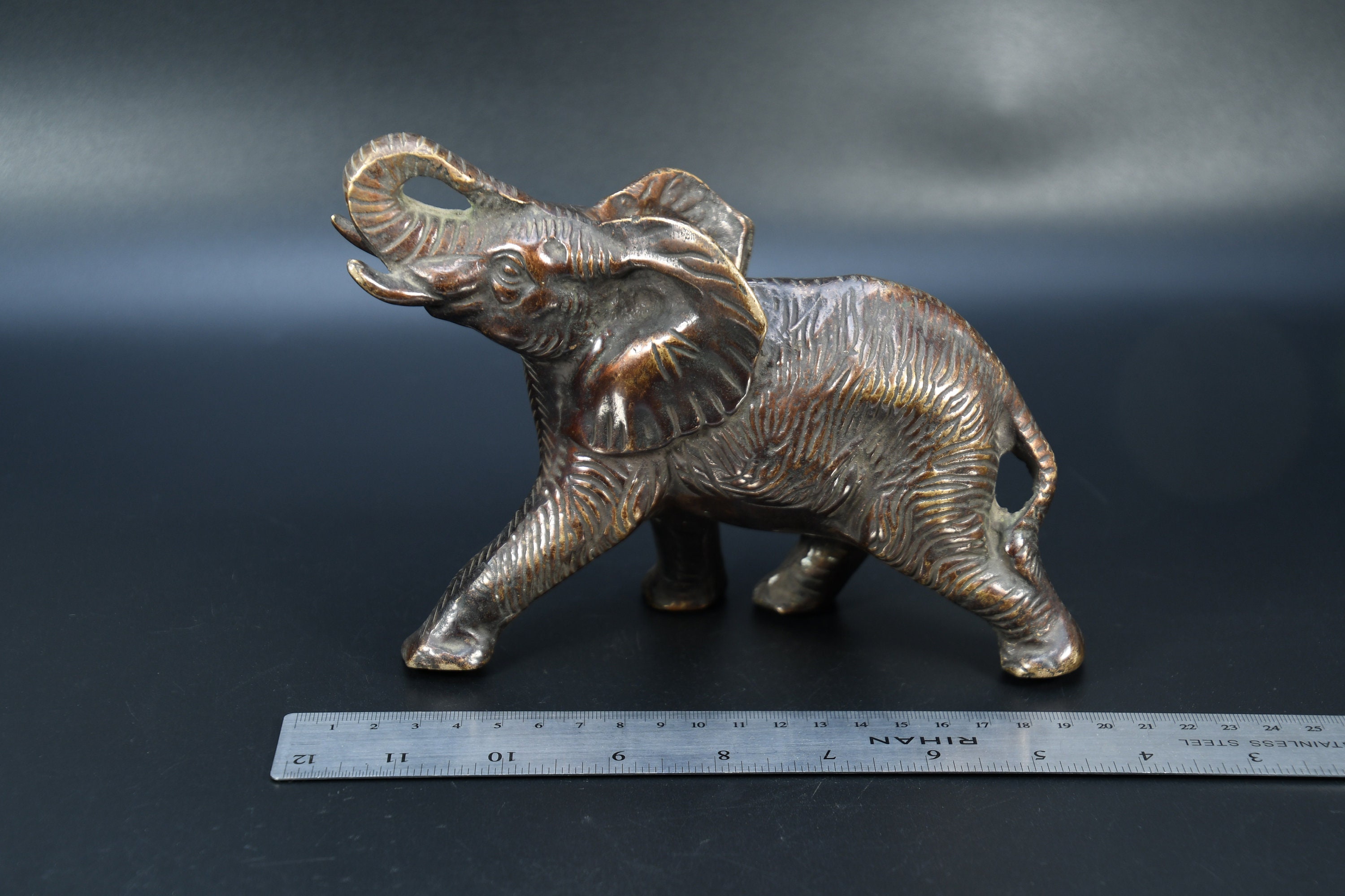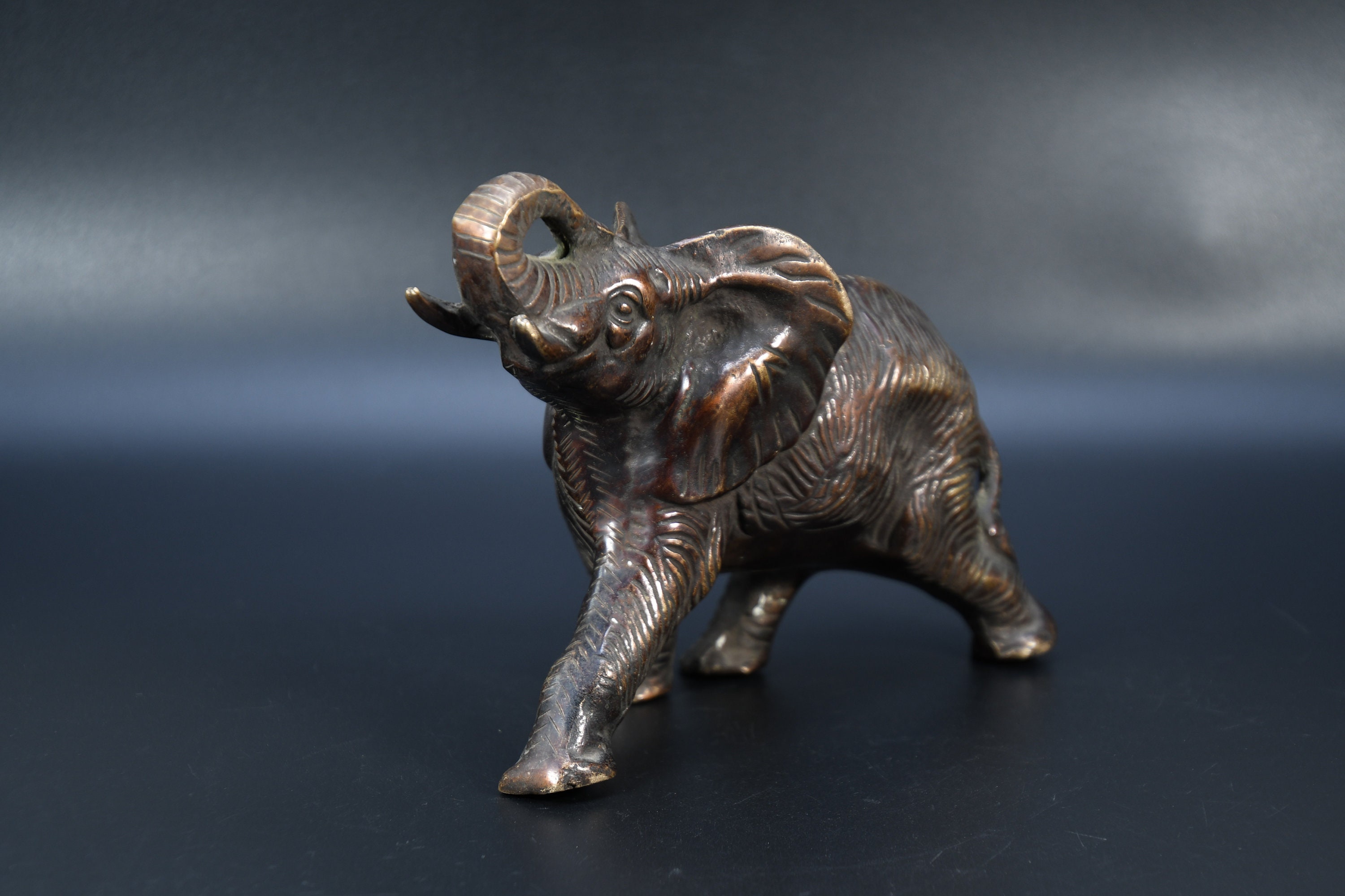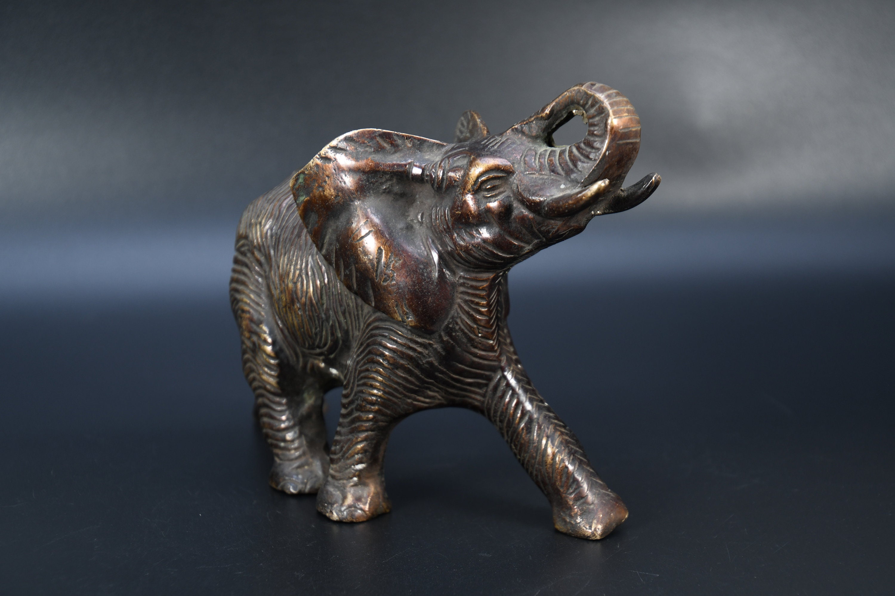 A beautiful vintage brass elephant figurine.Great Patina.Heavy piece. Collected by a family member who traveled the world and collected many interesting collectibles and artifacts.