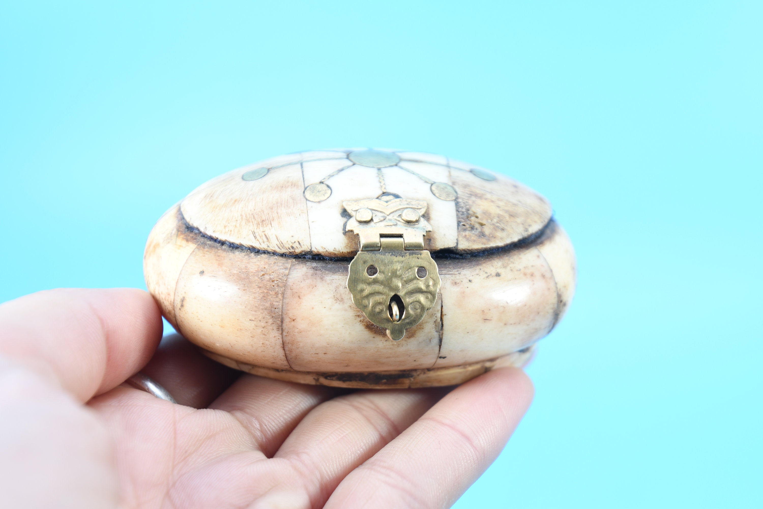Bone Box Tibetan Hand Craved Vintage Traditional Handmade wall hanging Solid Wood Buddhist Nepal