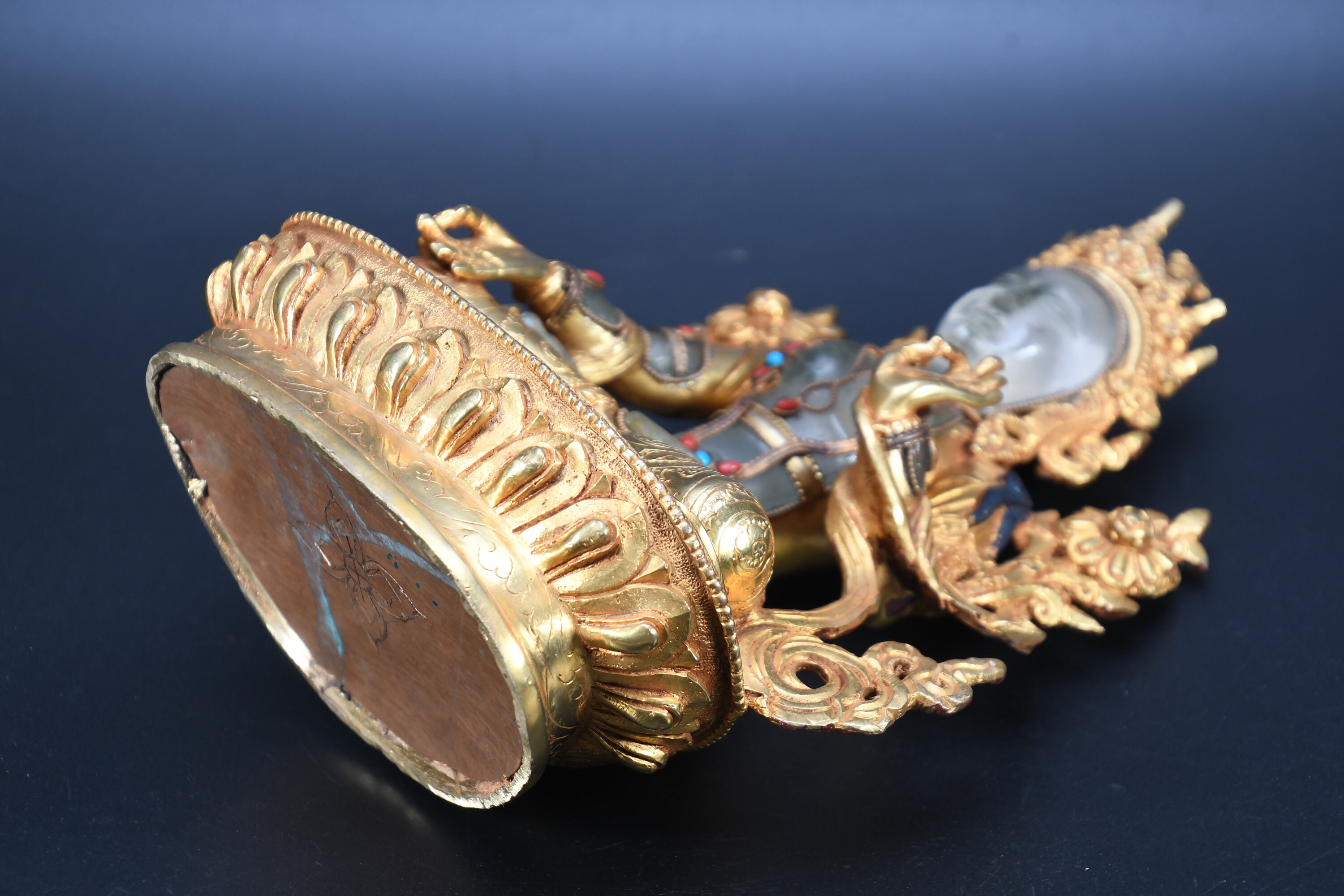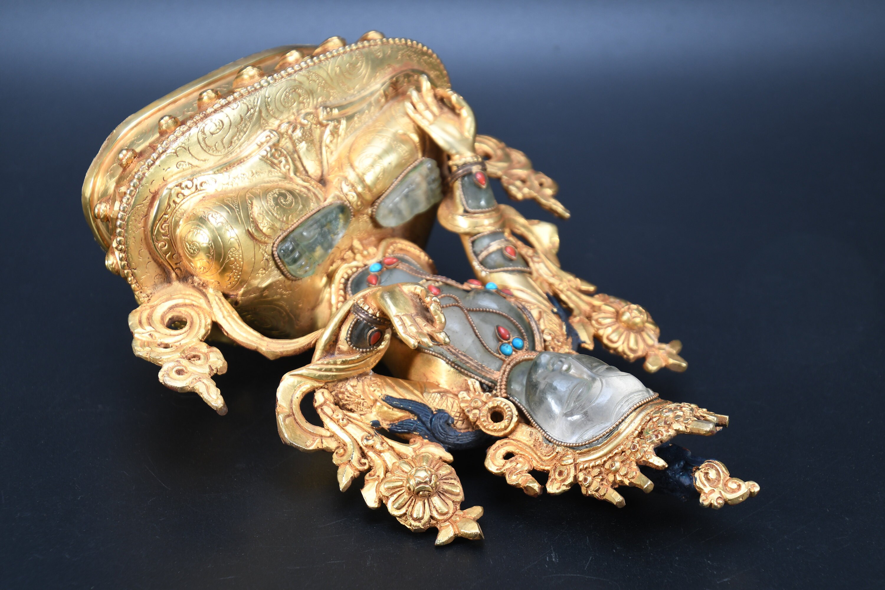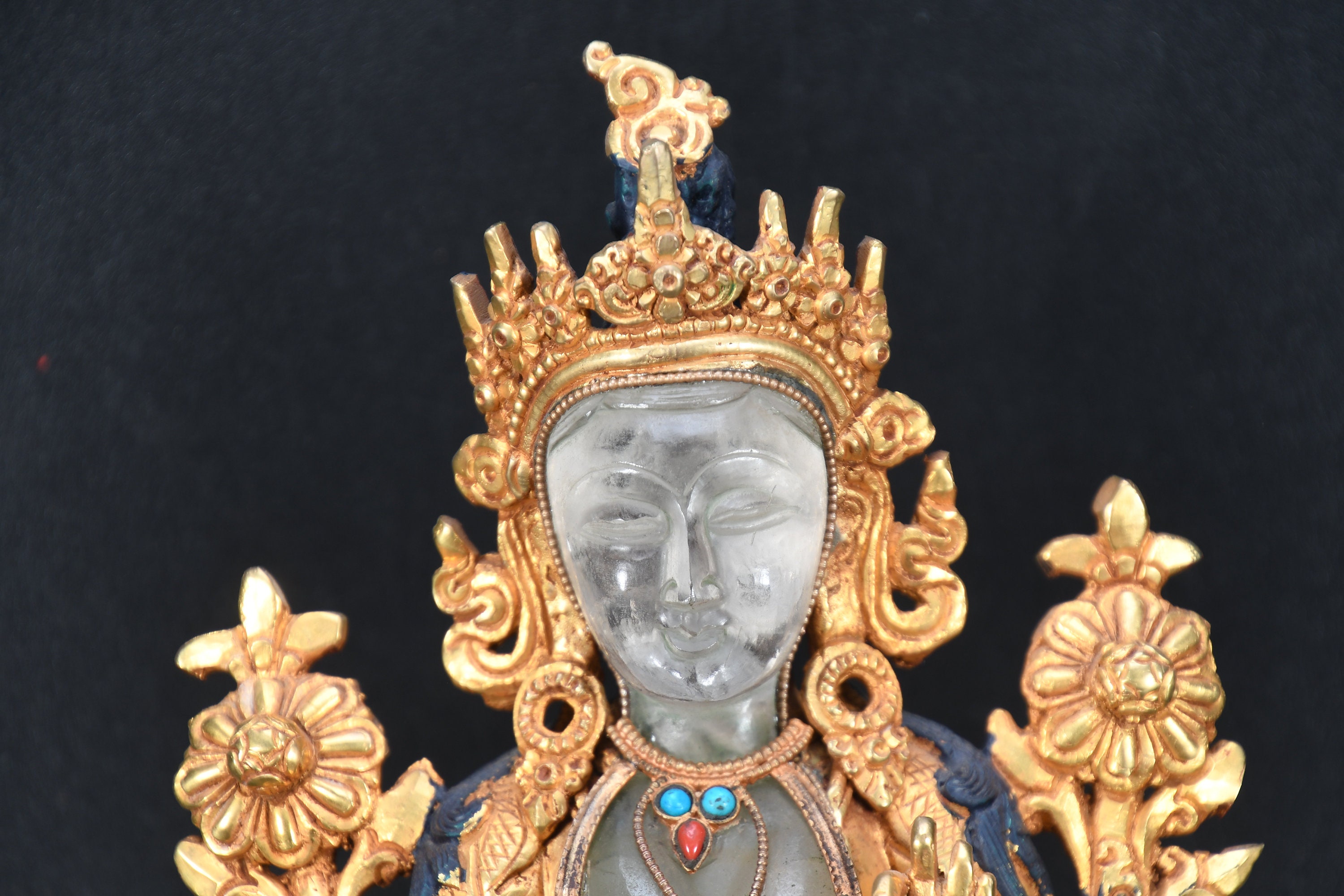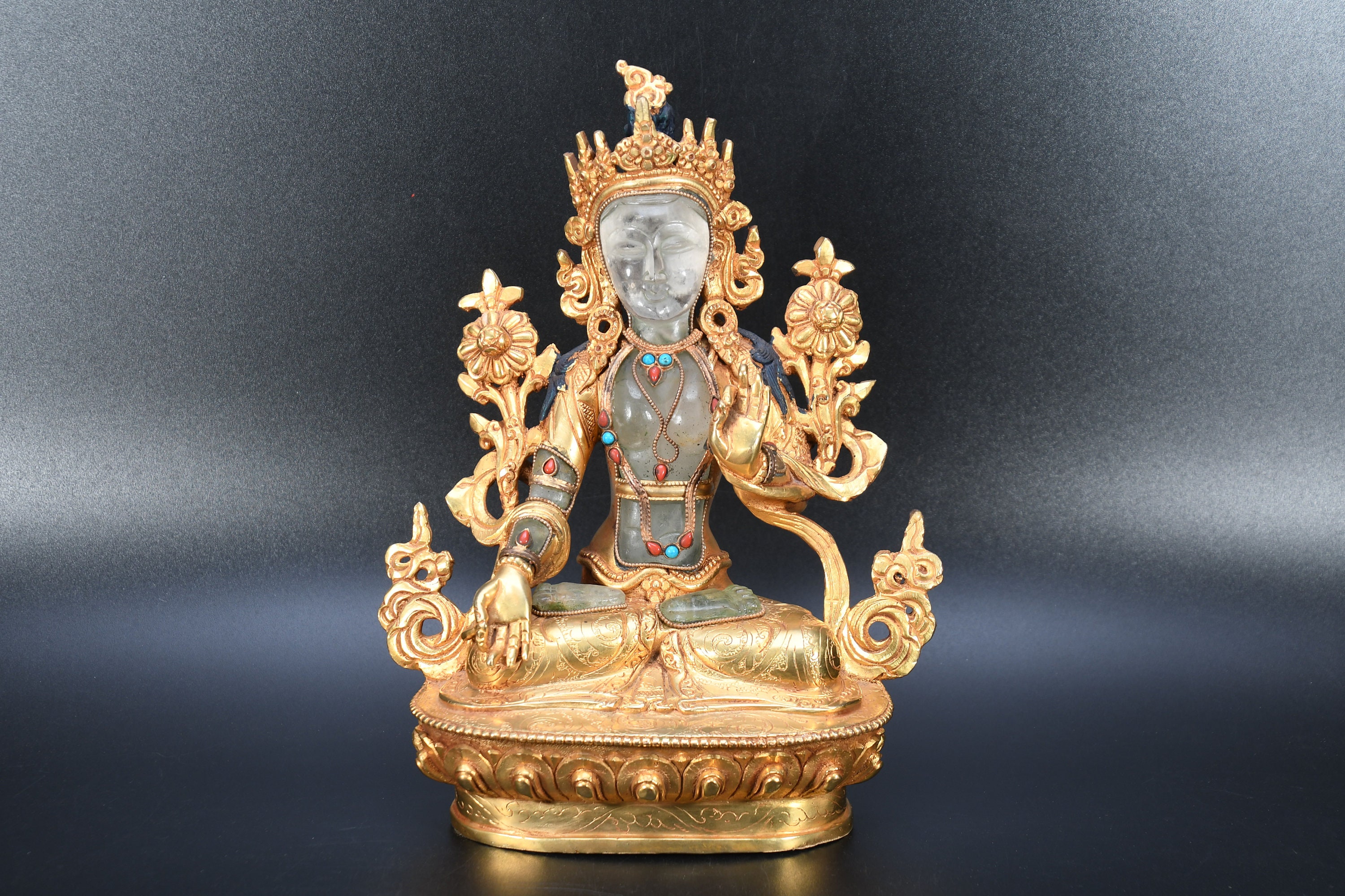 The Green Tara (Sanskrit: Shyamatara; Tibetan: Sgrol-ljang) was believed to be incarnated as the Nepali princess. She is considered by some to be the original Tara and is the female consort of Amoghasiddhi (see Dhyani-Buddha), one of the “self-born” buddhas. She is generally shown seated on a lotus throne with right leg hanging down, wearing the ornaments of a bodhisattva and holding the closed blue lotus (utpala).