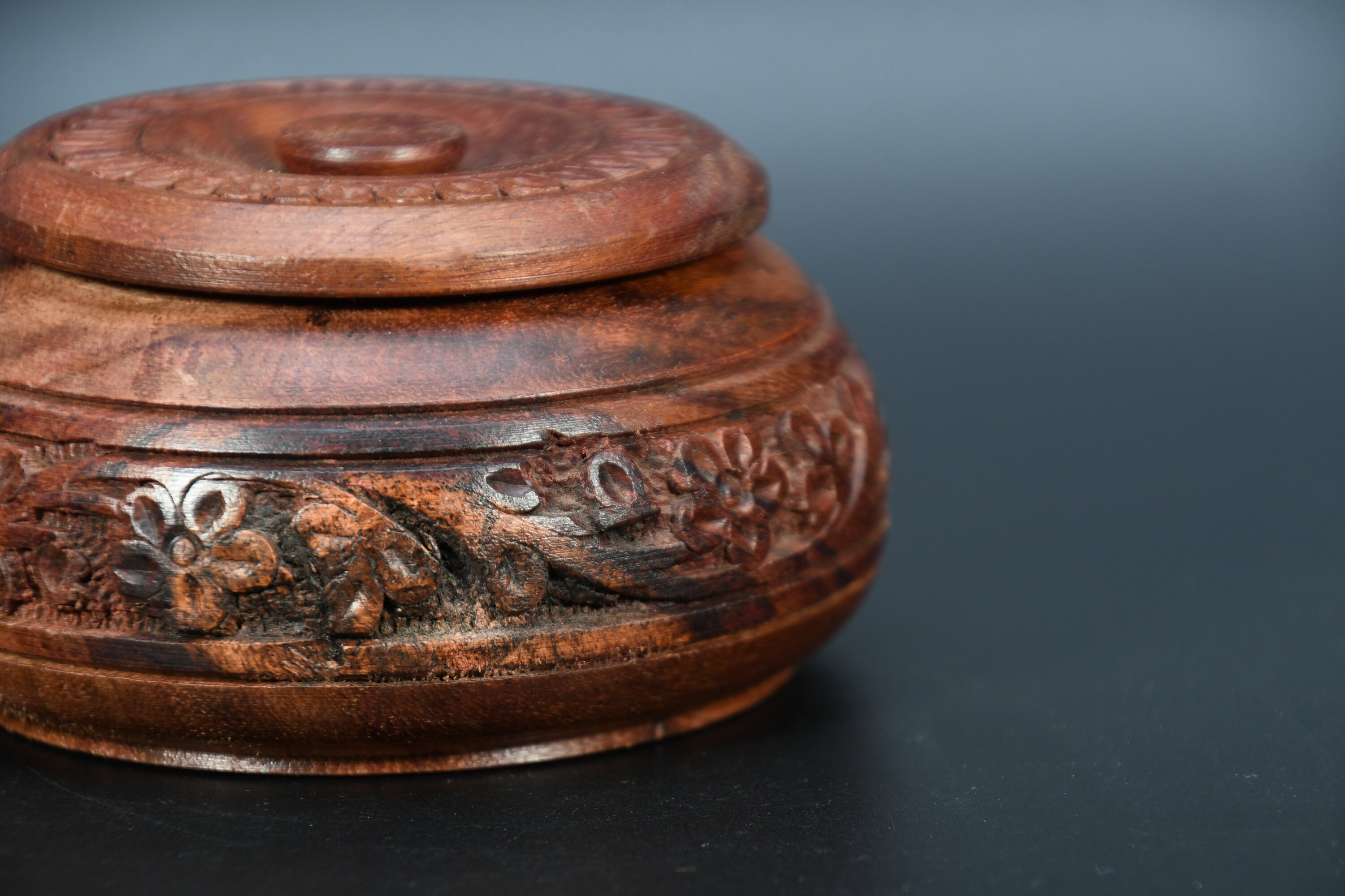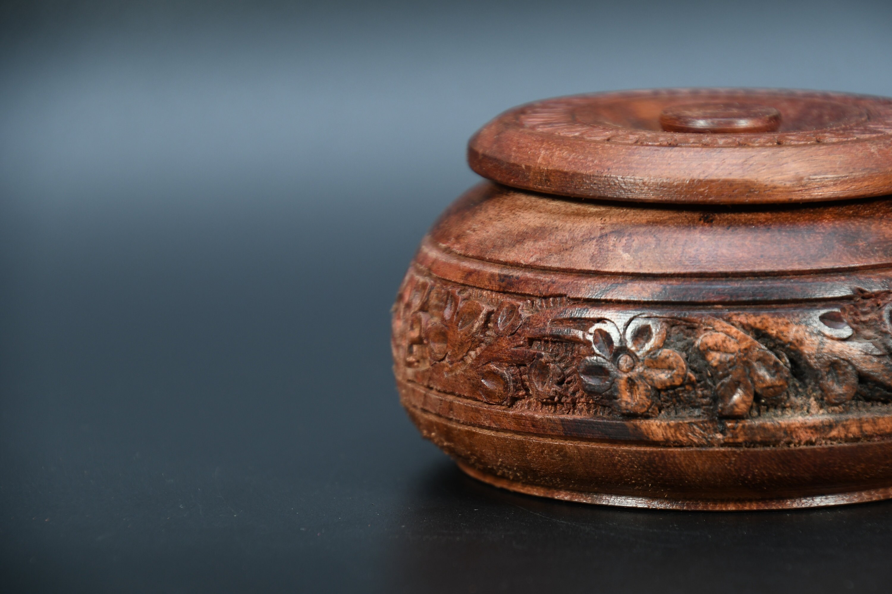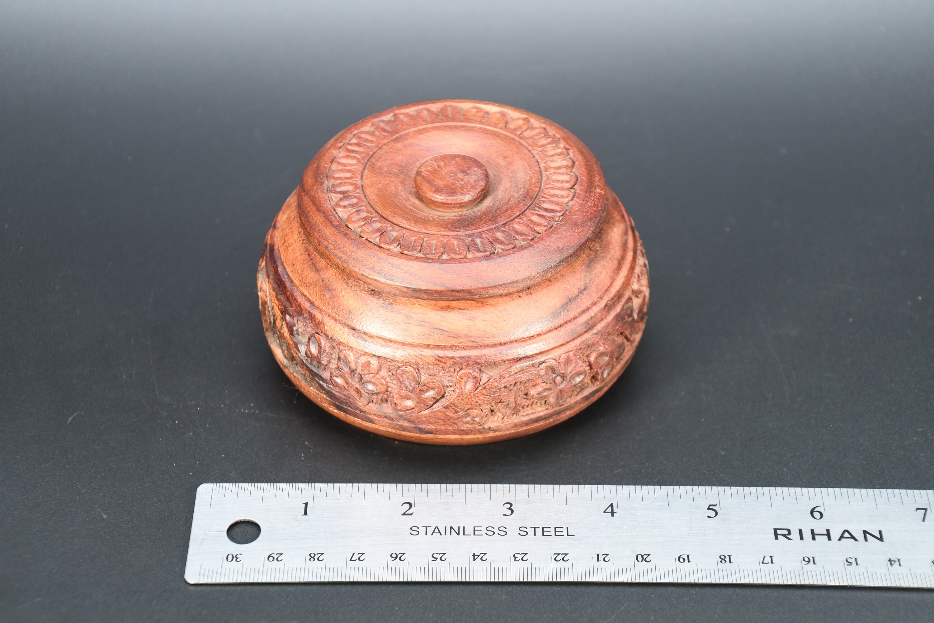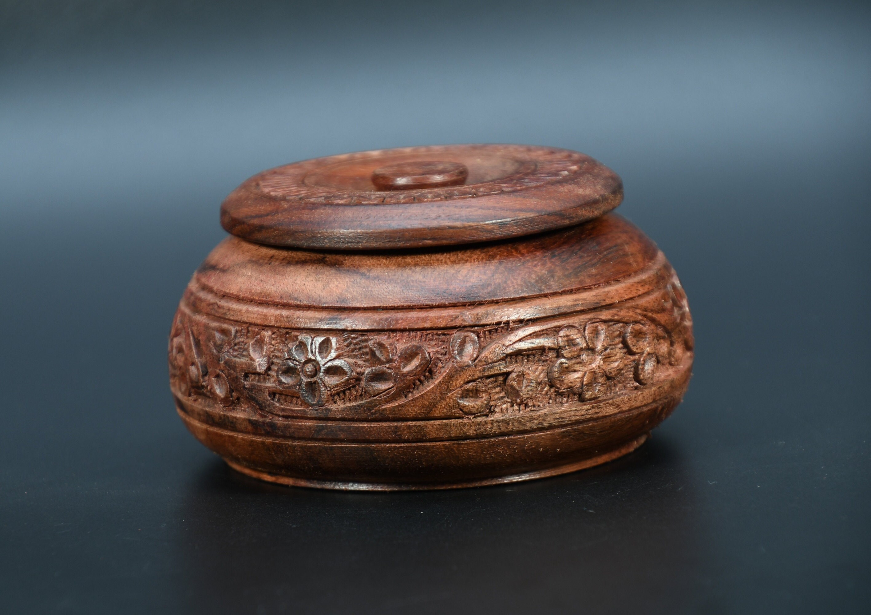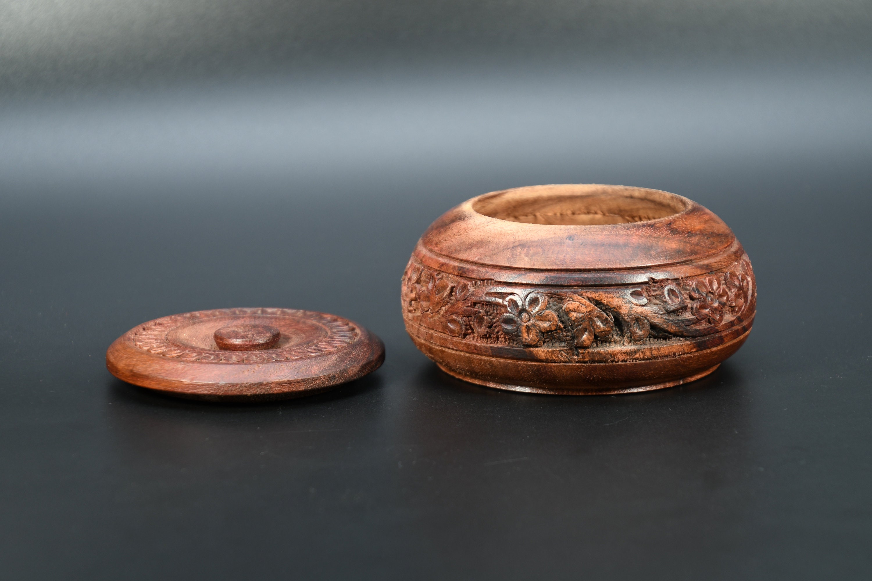 Hand Carved Wooden Incense Box, Vintage Tibetan Design