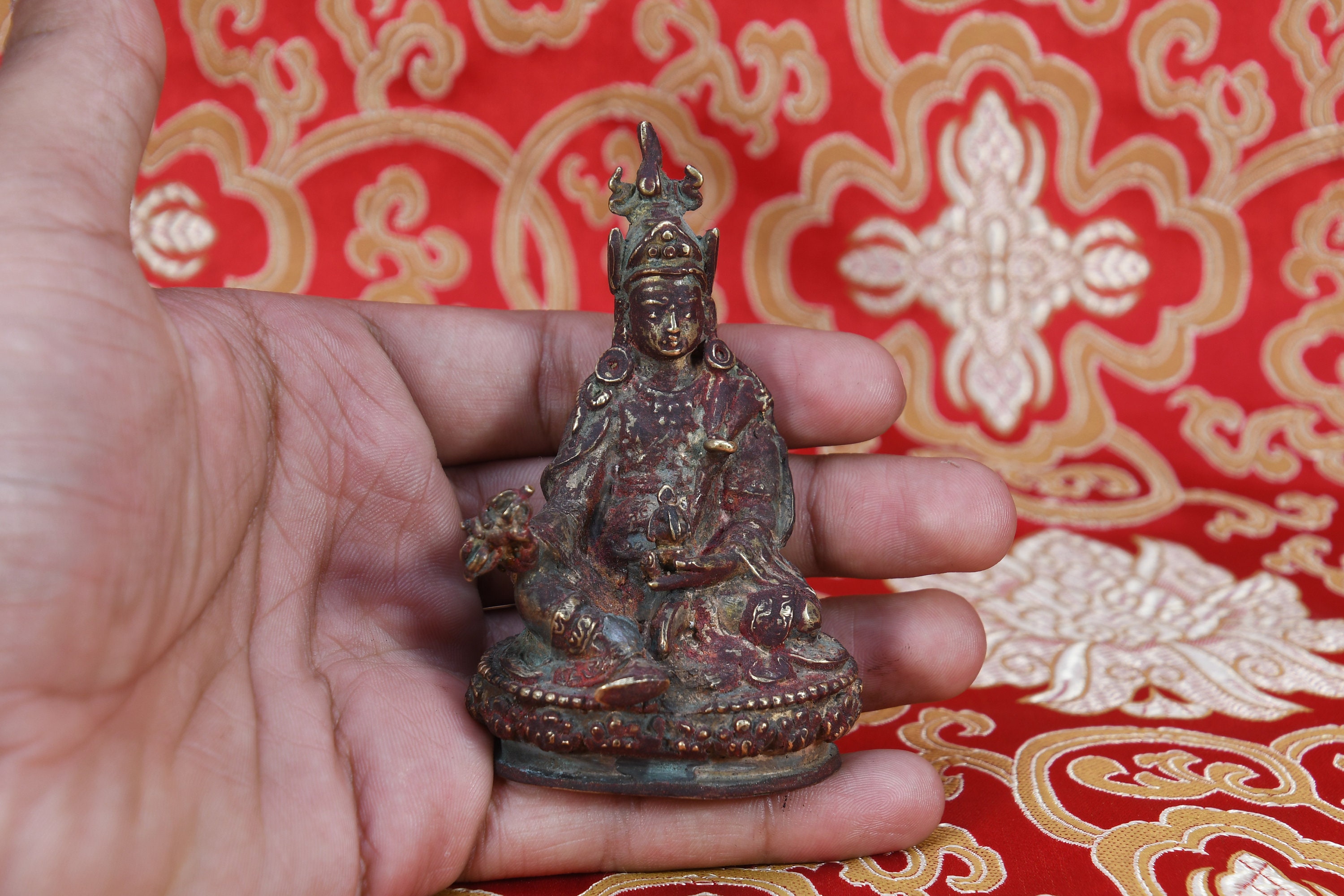 19th Century Antique Handmade Brass Decorative Traditional Religious Sculpture Tantric Collectible Religious Art Nepal
