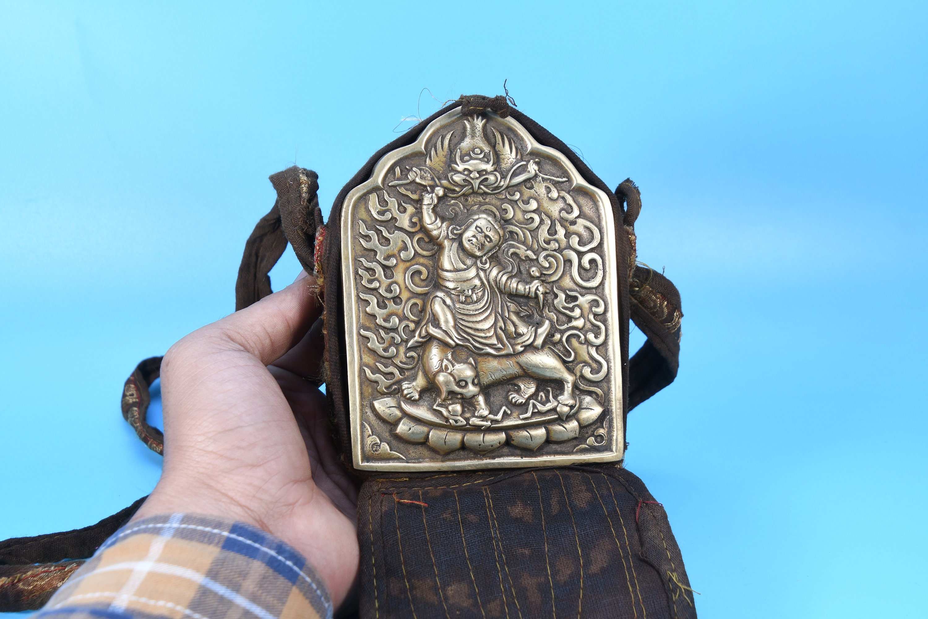The Pendant has Tibet Bronze Cloth Anger Gods Skull Head Statue Evil Spirits Amulet Pendant. It can be clearly seen in the image, It is in good condition, and was created by skilled craftsmen in traditional style with fine handcrafts.