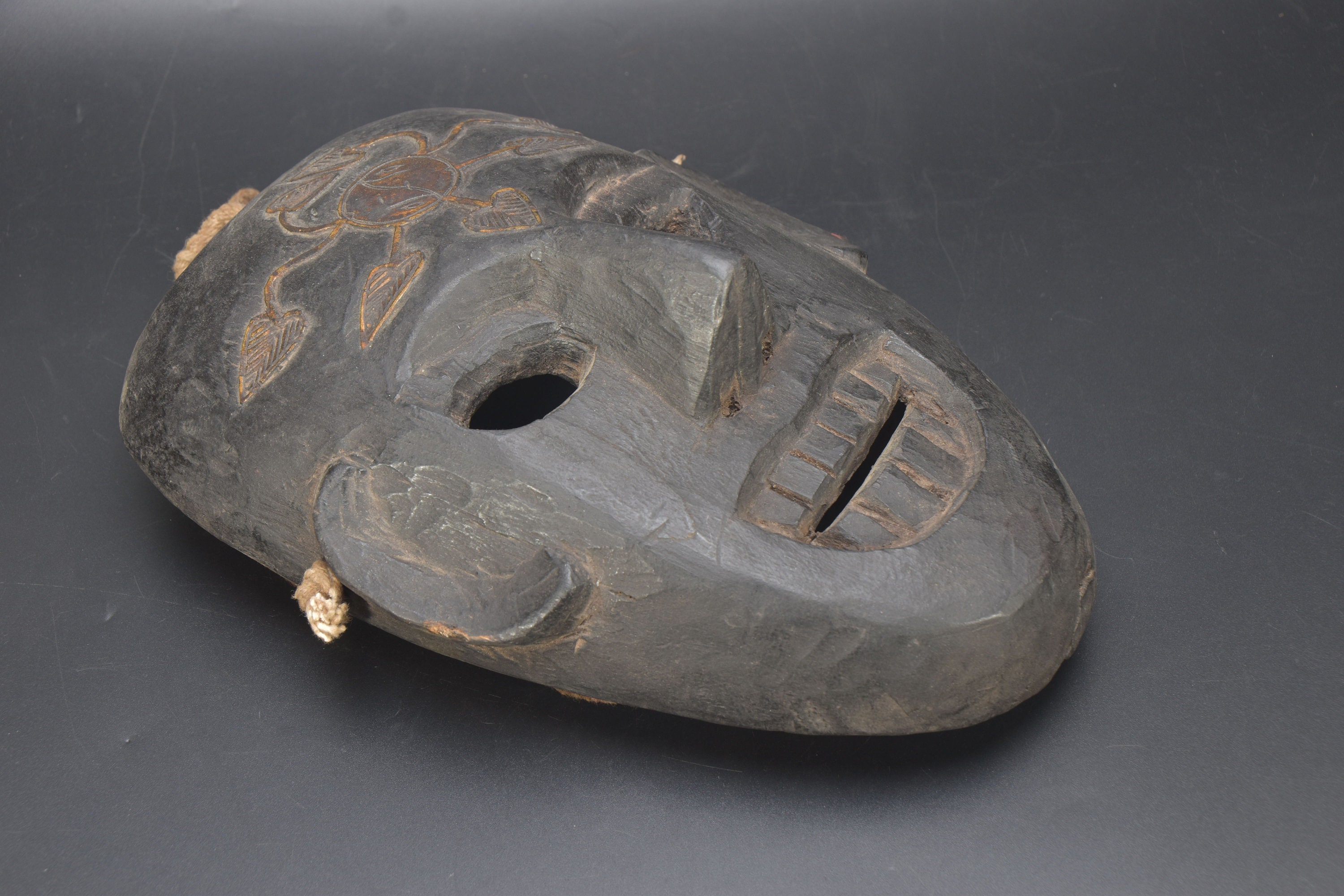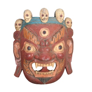 This Is a Rare Tharu Reverse Shaman Exorcism Mask That Was Hand Carved by a Tharu Shaman. The Tharu People Inhabit the Terai Region of Nepal and Some Areas of Tibet as Well. Shamanic Masks Like This Are Used in Religious Rituals, Festivals and Exorcisms by Shaman and Sometimes by Buddhist Monks.