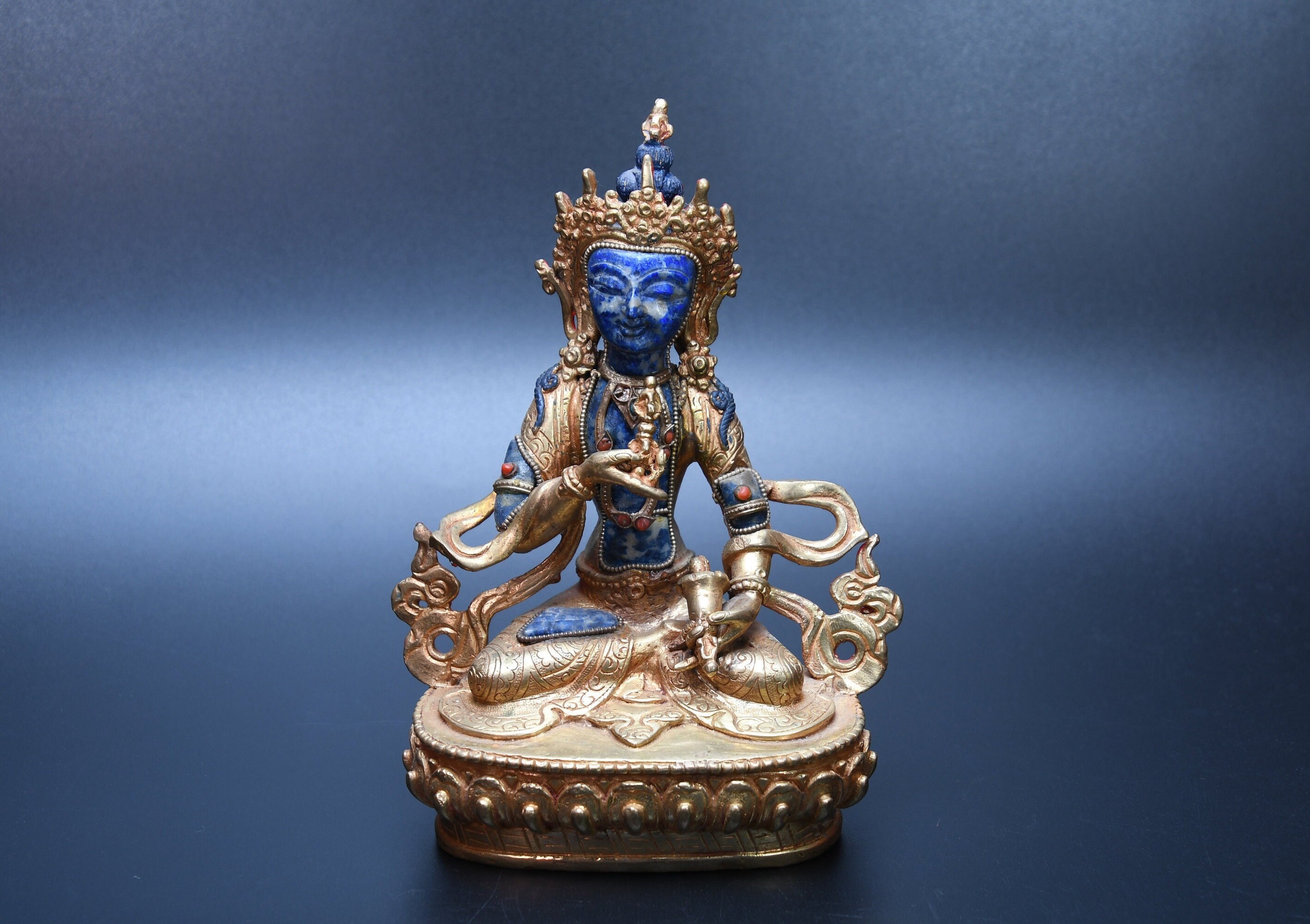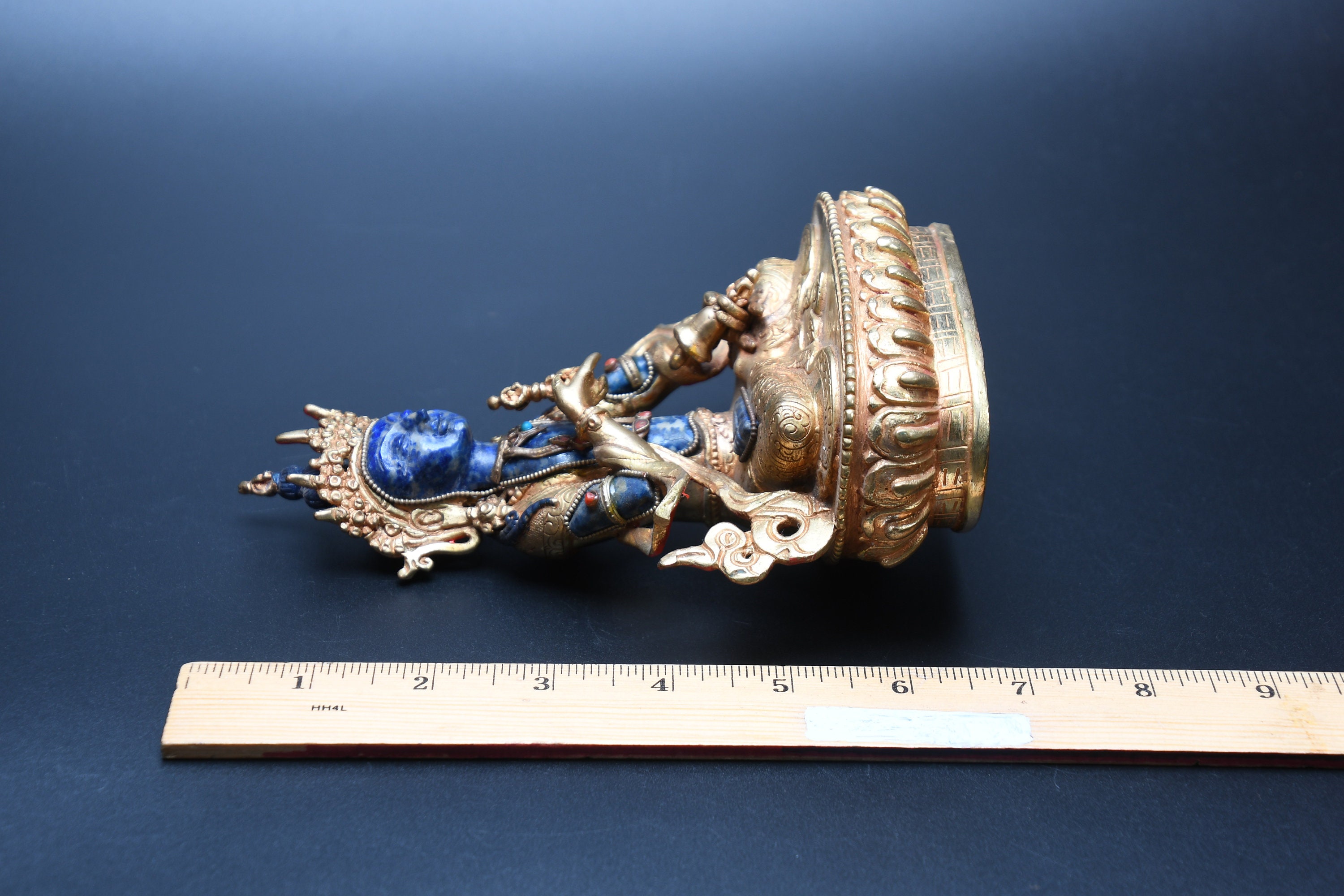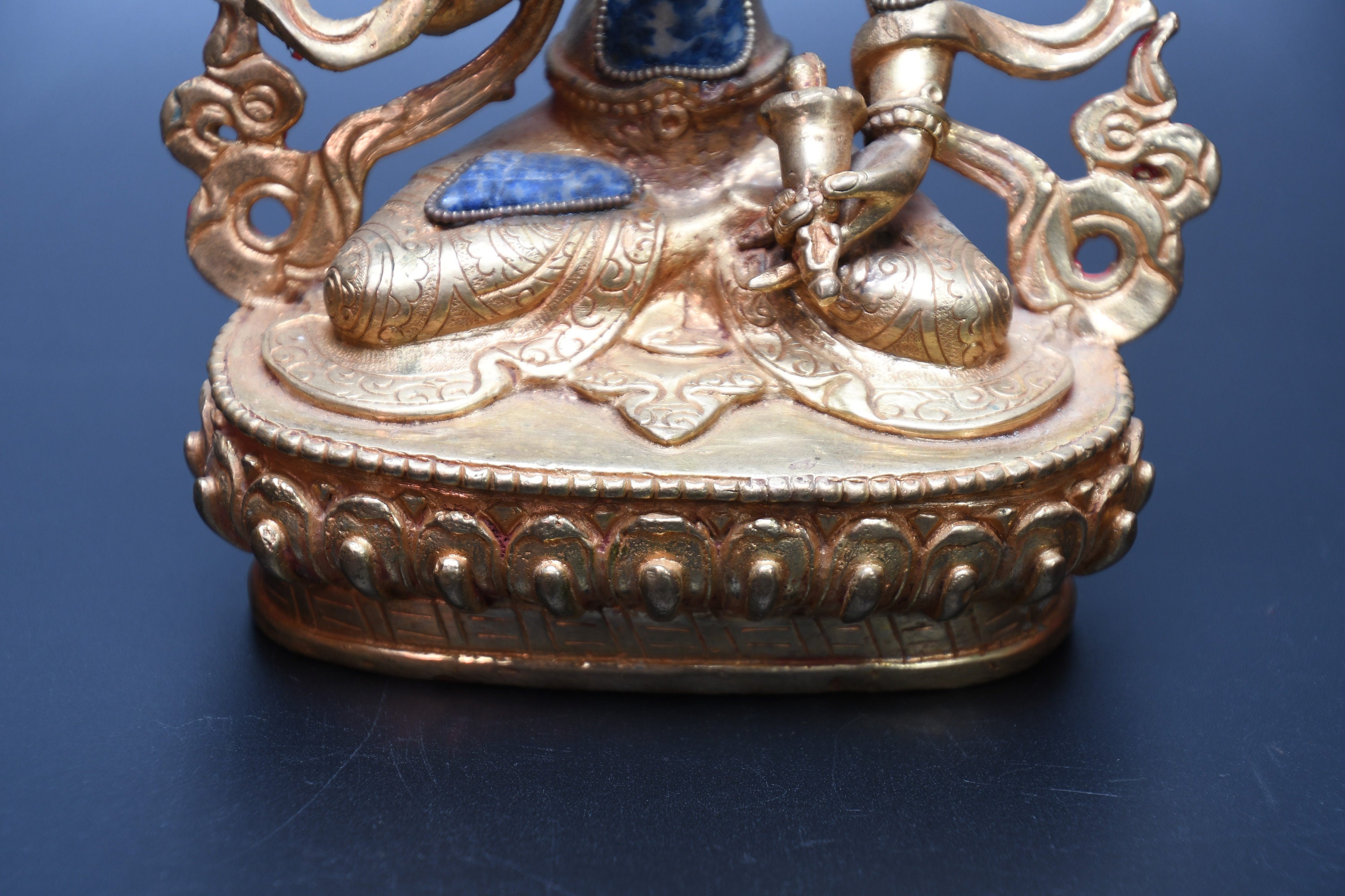Here is an Tibet bronze 24k gold inlay crystal gem Vajrasattva tara Kwan-Yin Buddha statue ,As you can see the image, It is in good condition, and was created by skilled craftsmen in traditional style with fine handcrafts . This is a great piece of valuable collection, a valuable personal alter or a very good present. the handwork is very fine with incredible detailing. Don't miss out this chance to get it .Wish you good luck!