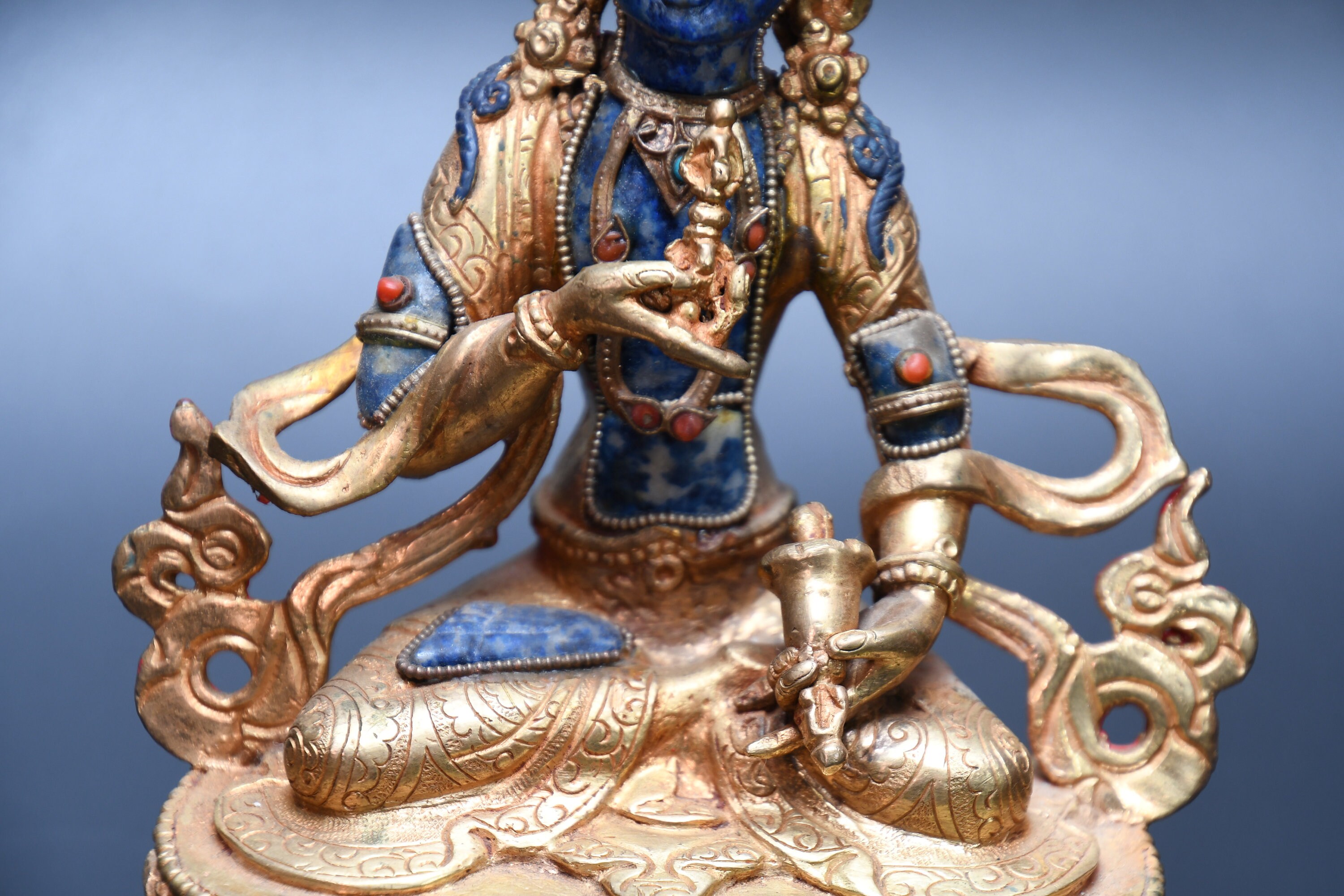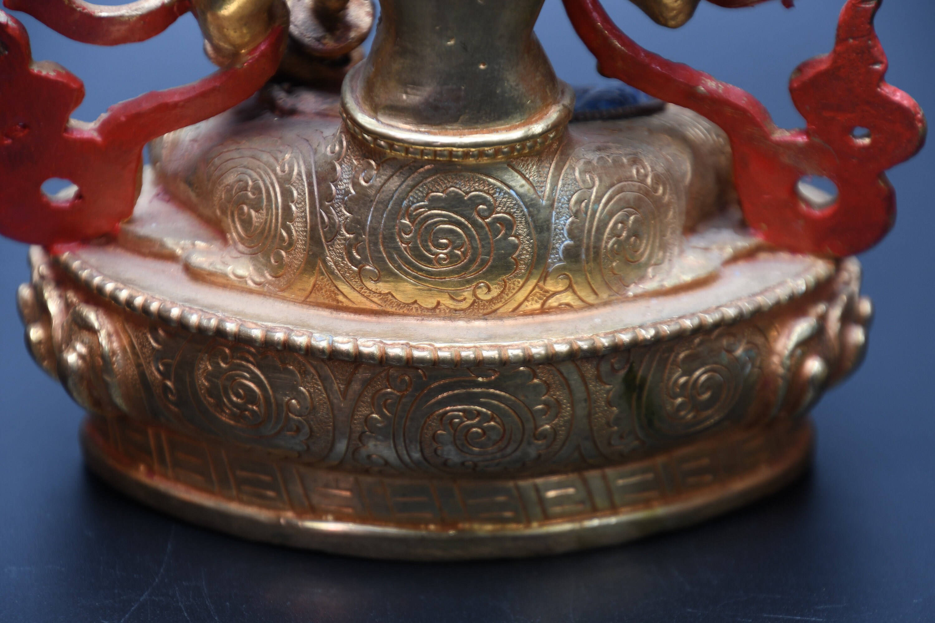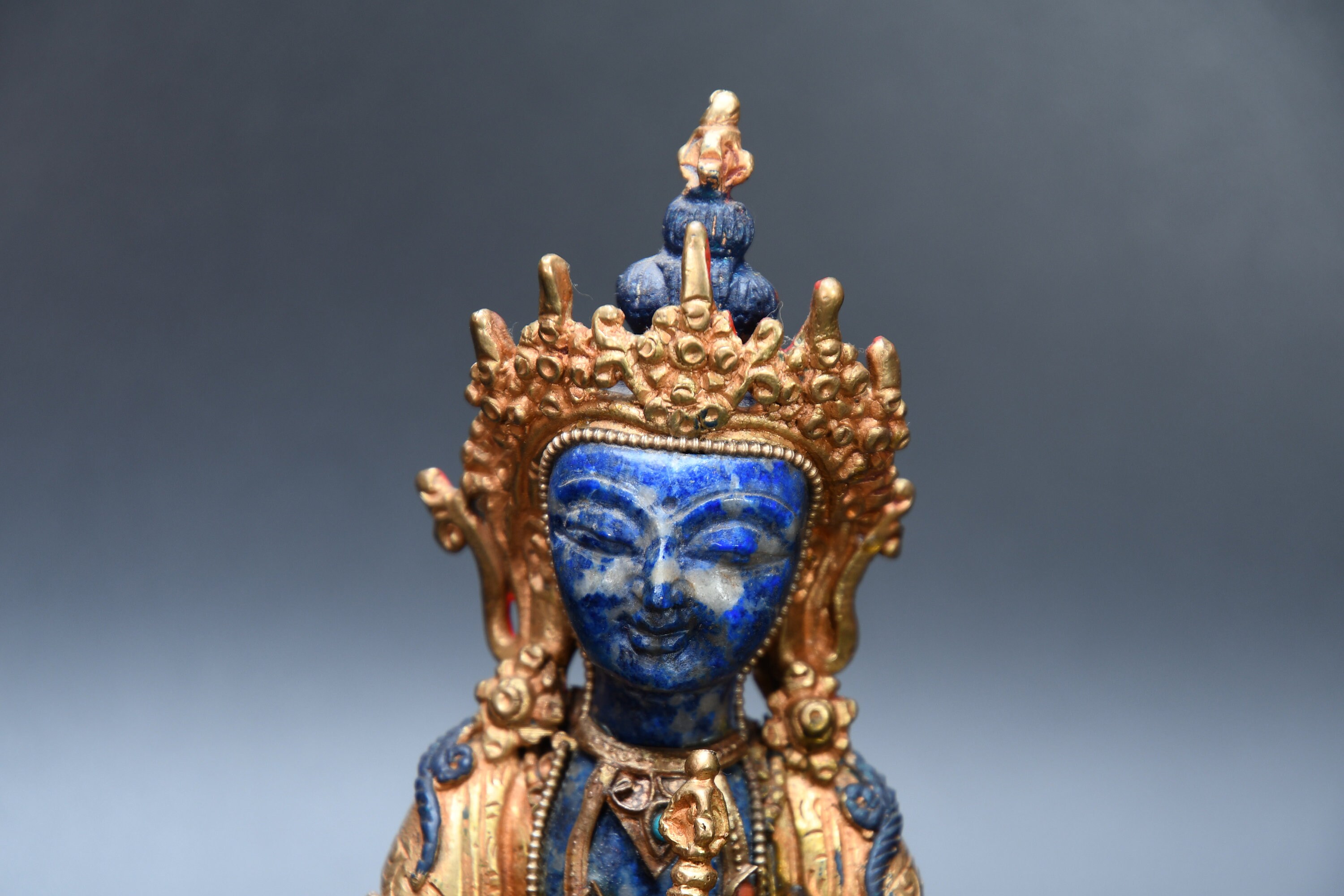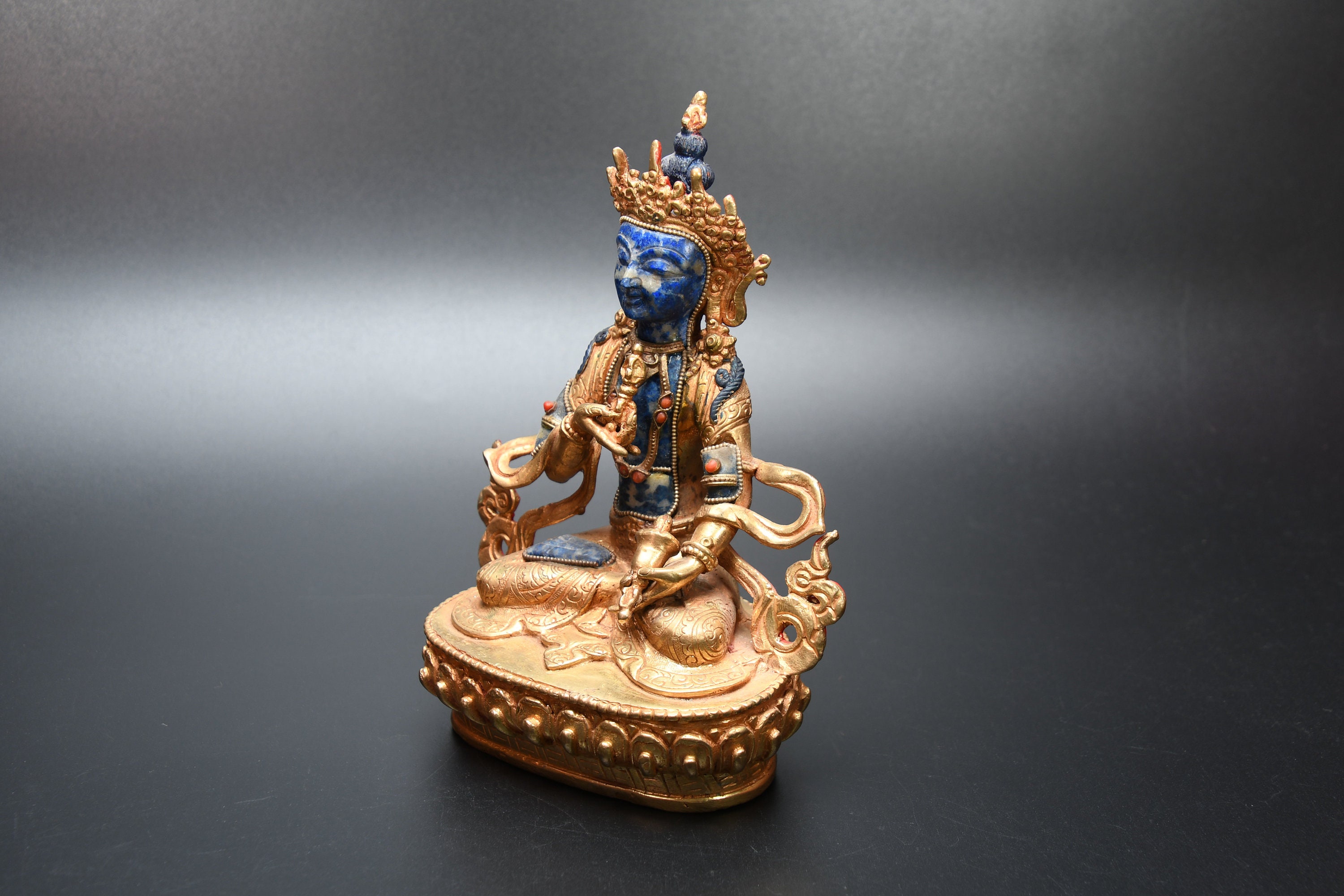 Here is an Tibet bronze 24k gold inlay crystal gem Vajrasattva tara Kwan-Yin Buddha statue ,As you can see the image, It is in good condition, and was created by skilled craftsmen in traditional style with fine handcrafts . This is a great piece of valuable collection, a valuable personal alter or a very good present. the handwork is very fine with incredible detailing. Don't miss out this chance to get it .Wish you good luck!