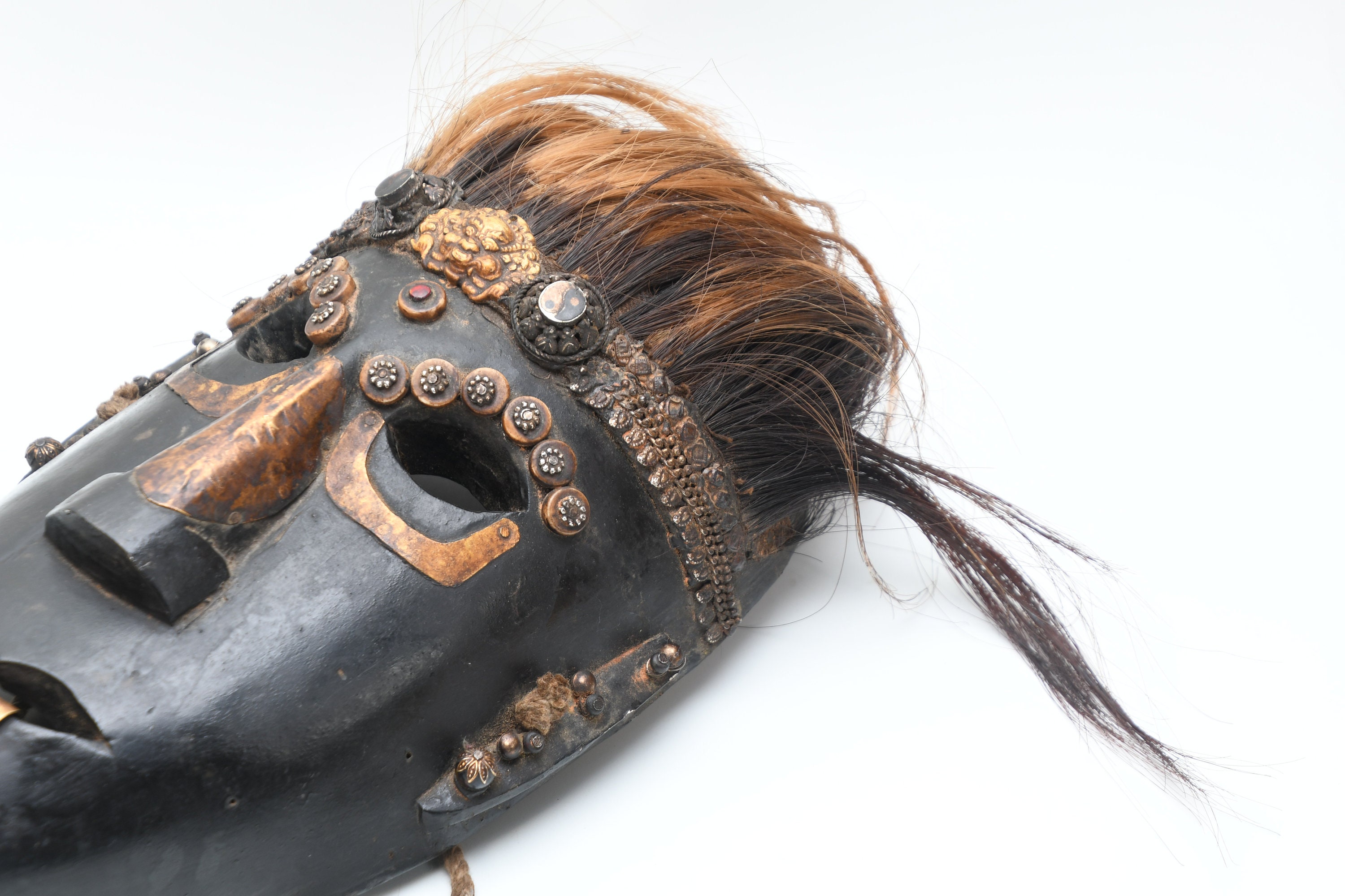 This Is a Rare Tharu Reverse Shaman Exorcism Mask That Was Hand Carved by a Tharu Shaman. The Tharu People Inhabit the Terai Region of Nepal and Some Areas of Tibet as Well. Shamanic Masks Like This Are Used in Religious Rituals, Festivals and Exorcisms by Shaman and Sometimes by Buddhist Monks.