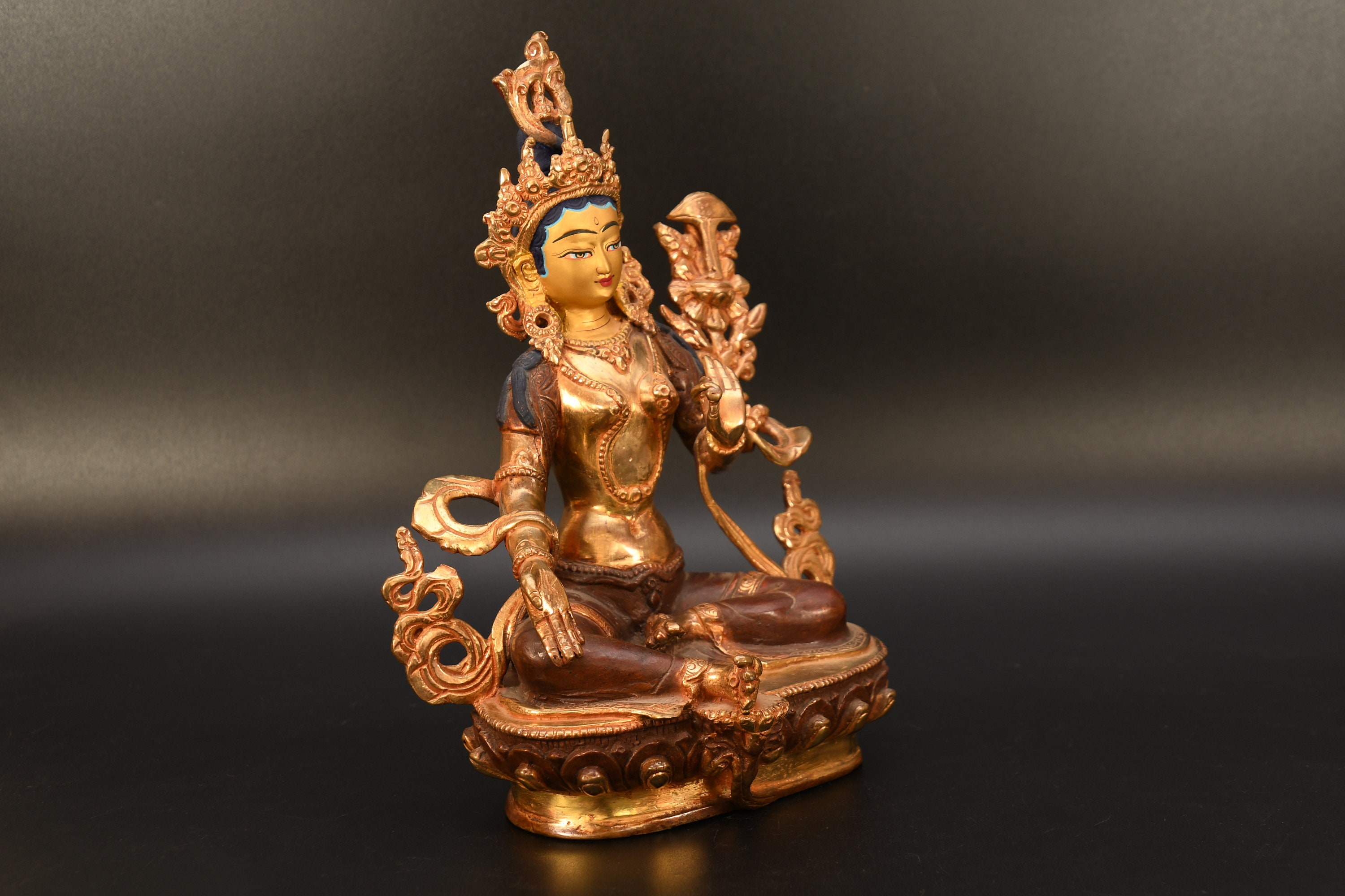Handmade Green Tara Statue, Buddhist Altar Decor (8.85 Inches)